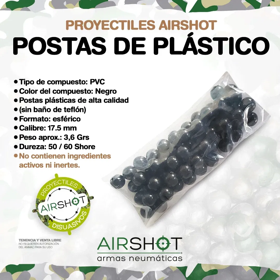 - Tipo de munición: Postas de goma esféricas