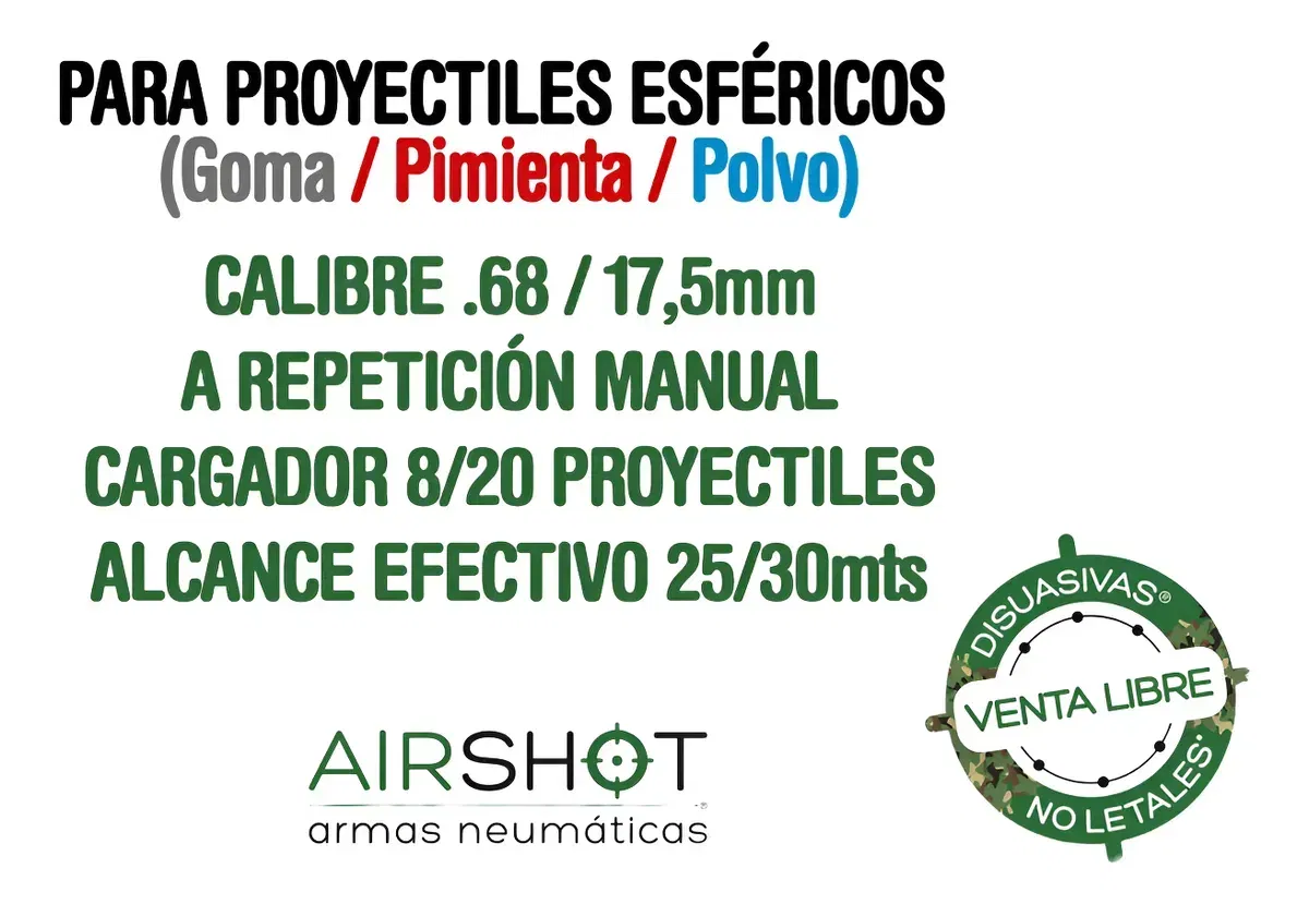 Escopeta Disuasiva® a repetición manual accionada por CO2