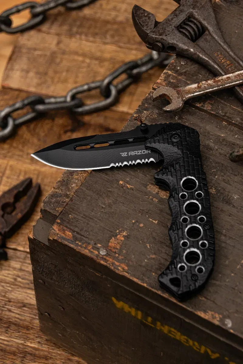A diferencia de las navajas fabricadas en acero puro, algunas evolucionaron con partes de aluminio en su mango. De esta forma suman algunas características especiales. El aluminio ultra-liviano hace de esta navaja una pieza ligera y portátil para el día a día, sin quitarle robustez.