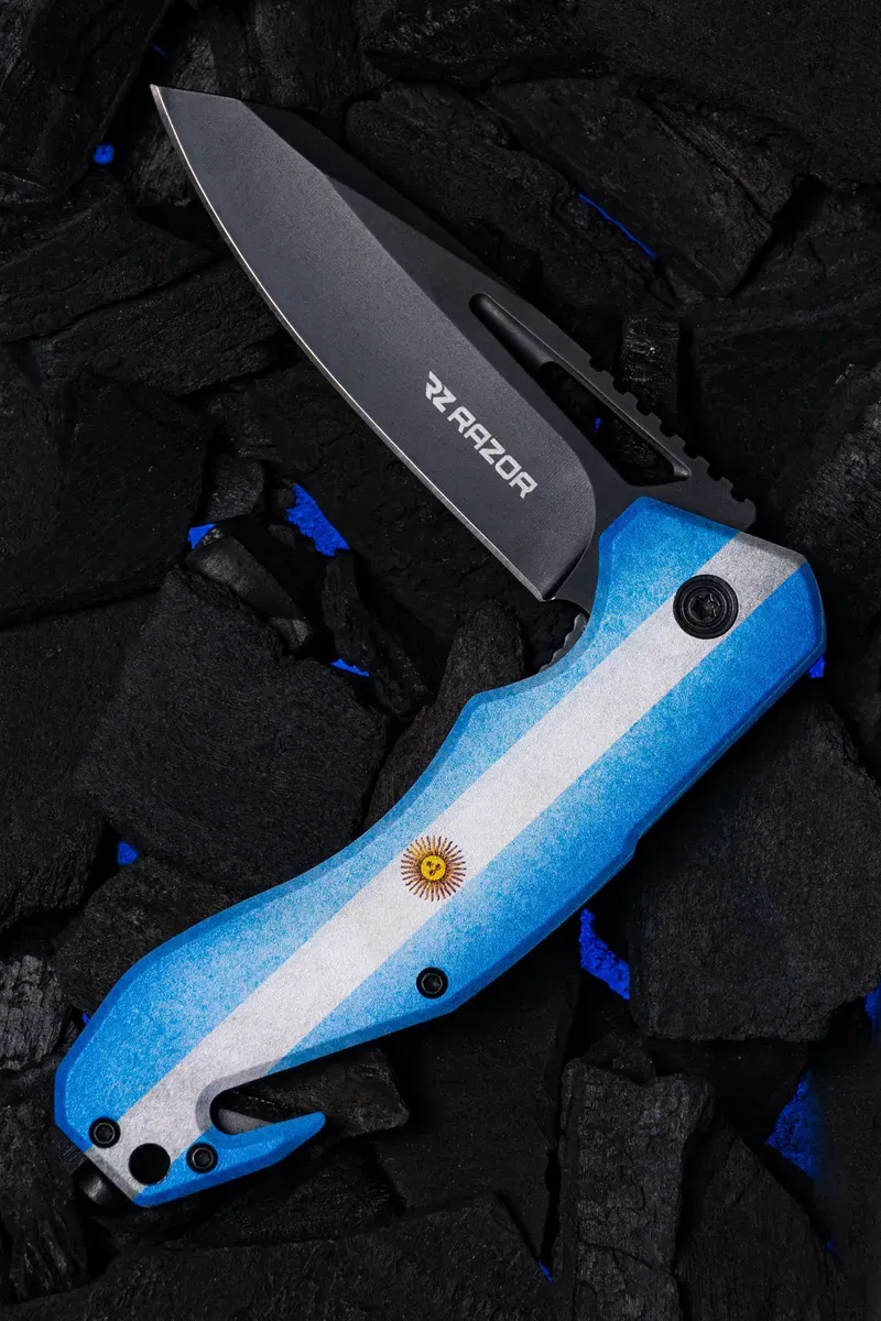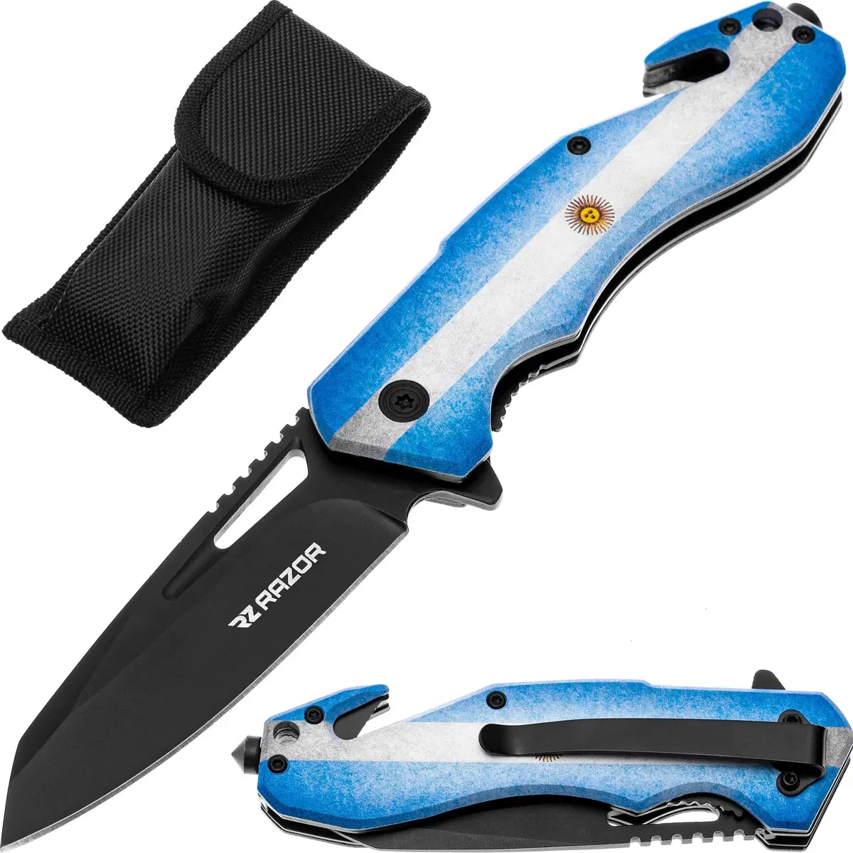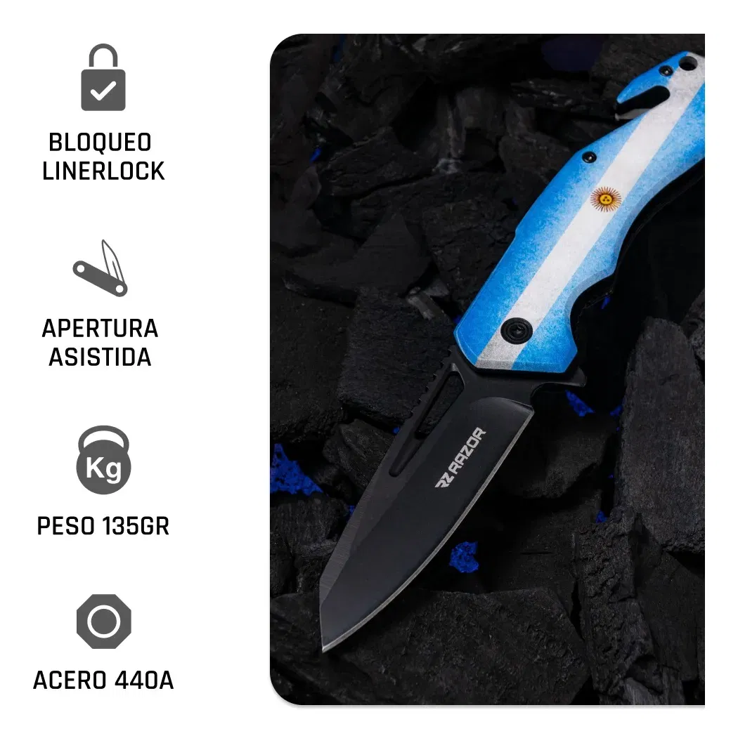 En esta ocasión RAZOR presenta su nueva línea de navajas de rescate inspirada en las fuerzas de seguridad. Su hoja Tanto en Acero Inoxidable 440A, cachas reforzadas de acero inoxidable, rompevidrio, cortacinturon y clip para bolsillo la hacen una navaja muy versátil para usar en cualquier situación.