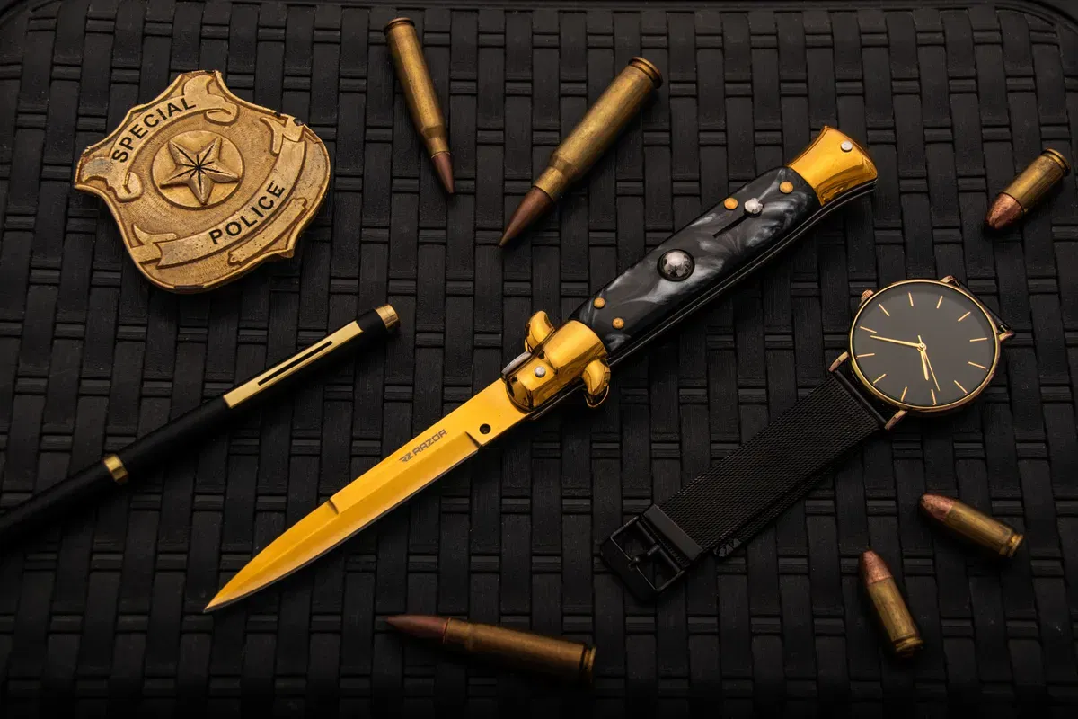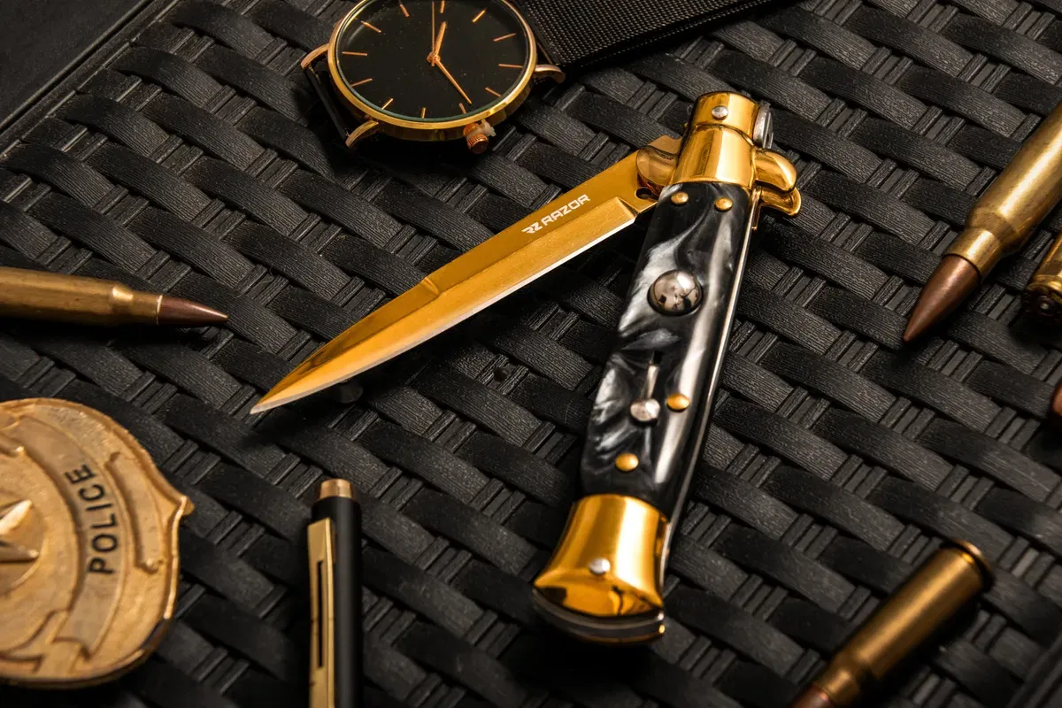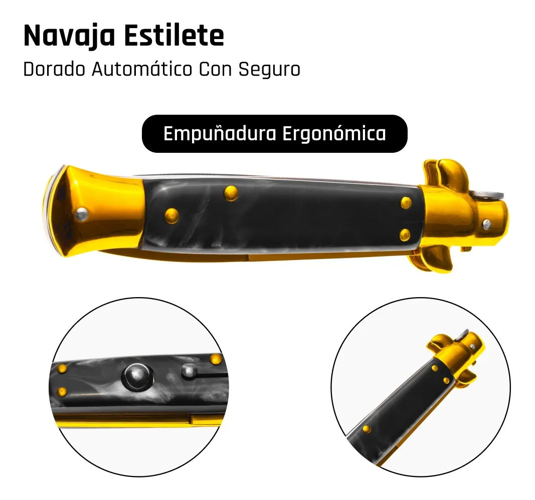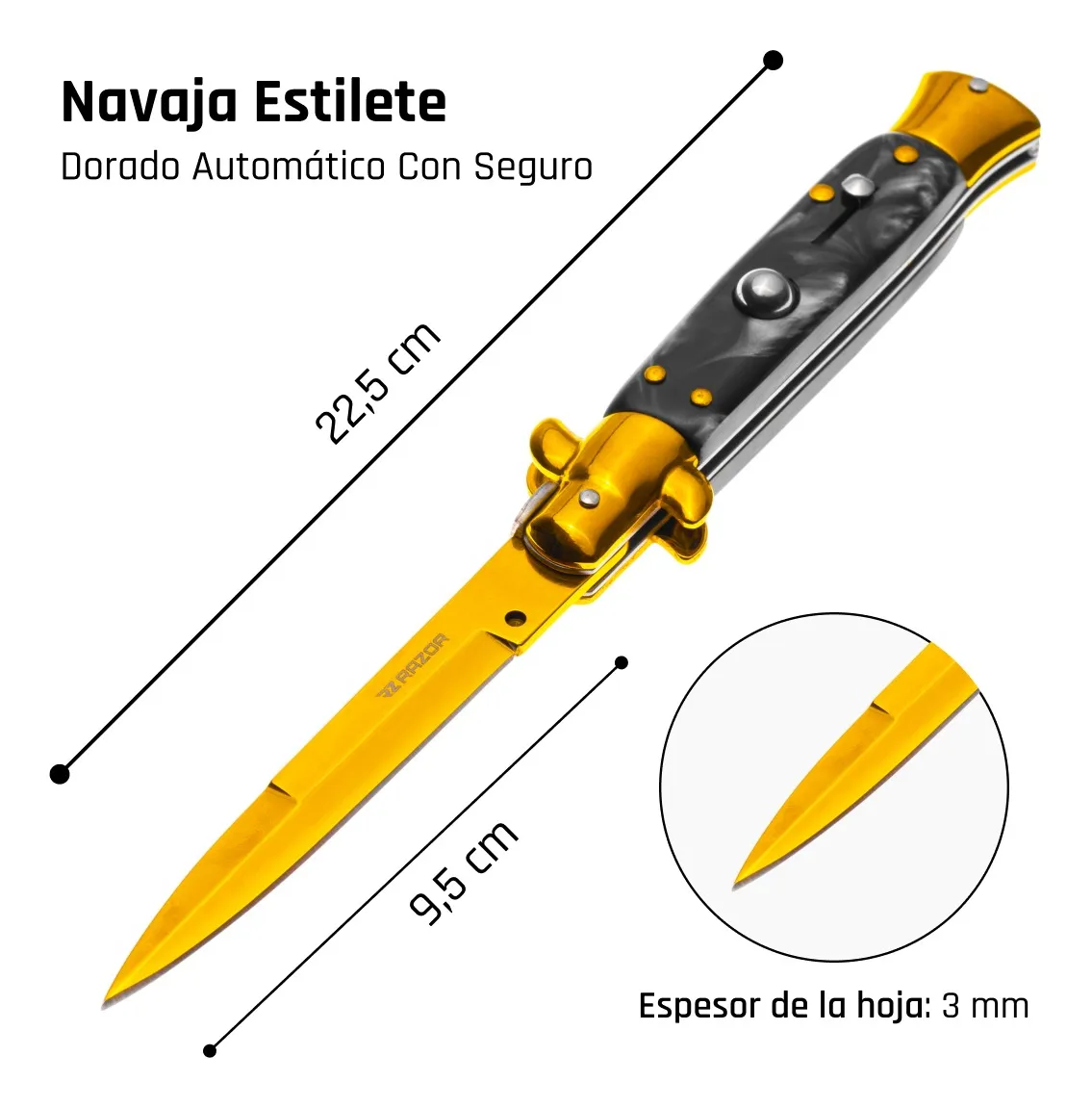 NAVAJA ESTILETE ITALIANO DORADO AUTOMATICO