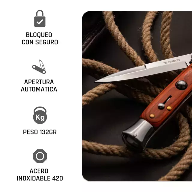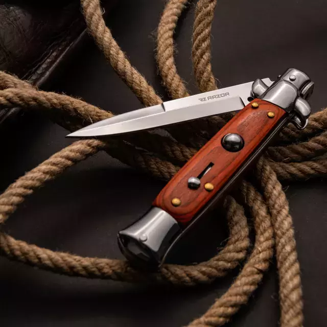 Diseñado con el clásico toque italiano, este estilete combina elegancia y eficiencia. Su mecanismo de botón permite un despliegue rápido y fácil, asegurando que siempre estés preparado. El estilete Razor no solo es una herramienta eficaz, sino también una declaración de estilo y sofisticación. Acompaña a los héroes modernos y exploradores en cada paso de su camino.