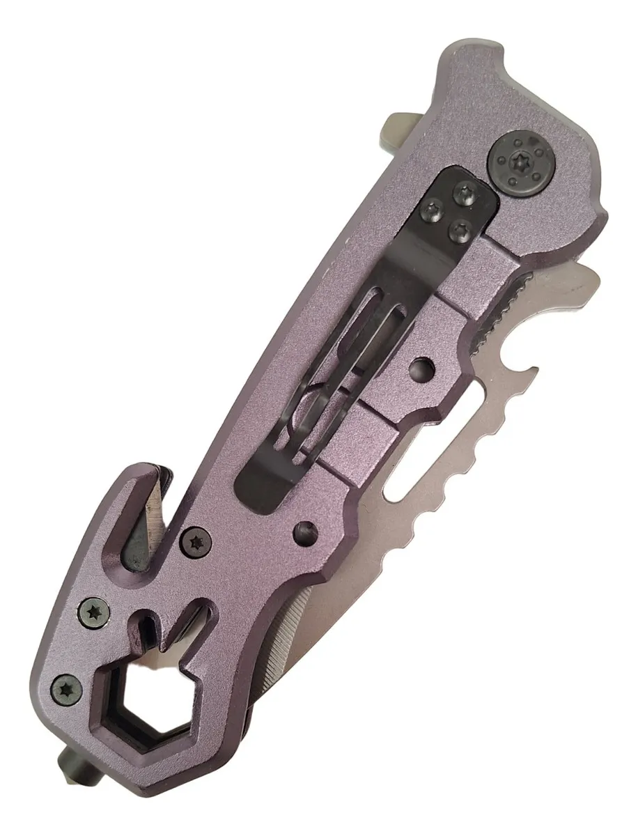 * Corta Suncho/Soga: Perfecto para situaciones de rescate, este cortador te permite liberarte rápidamente de cualquier tipo de cuerda o cinturón.