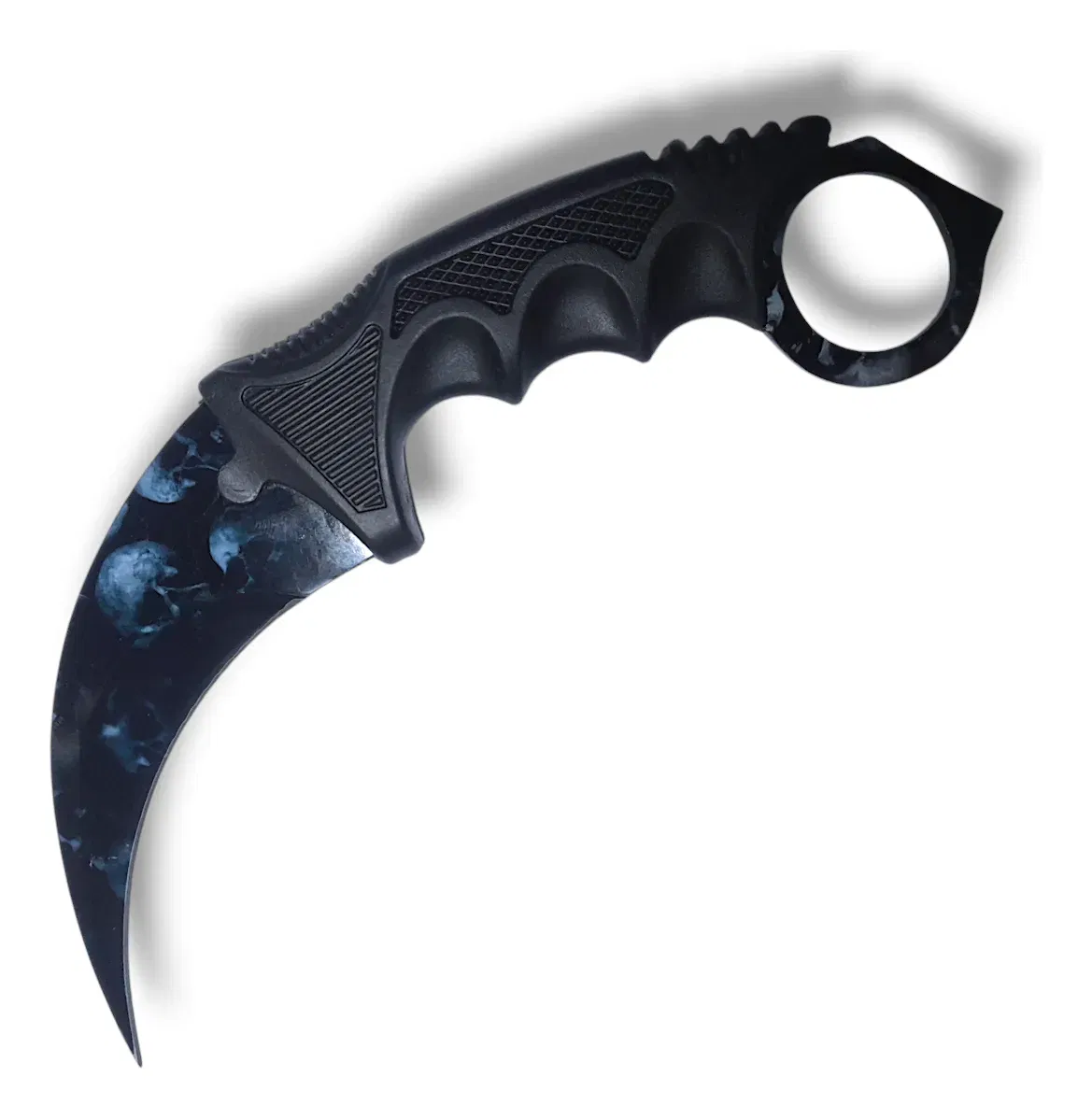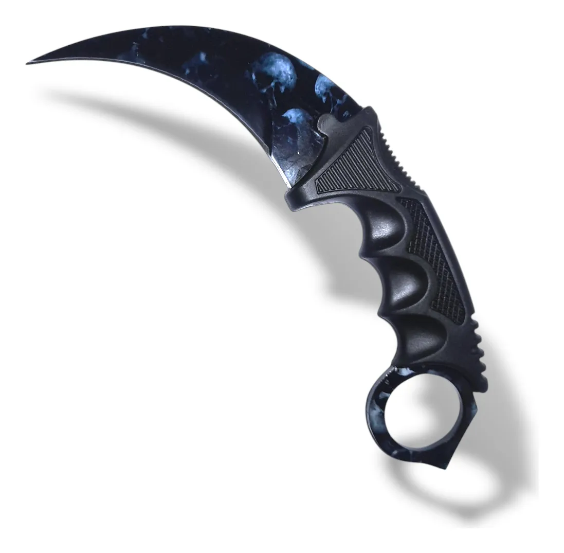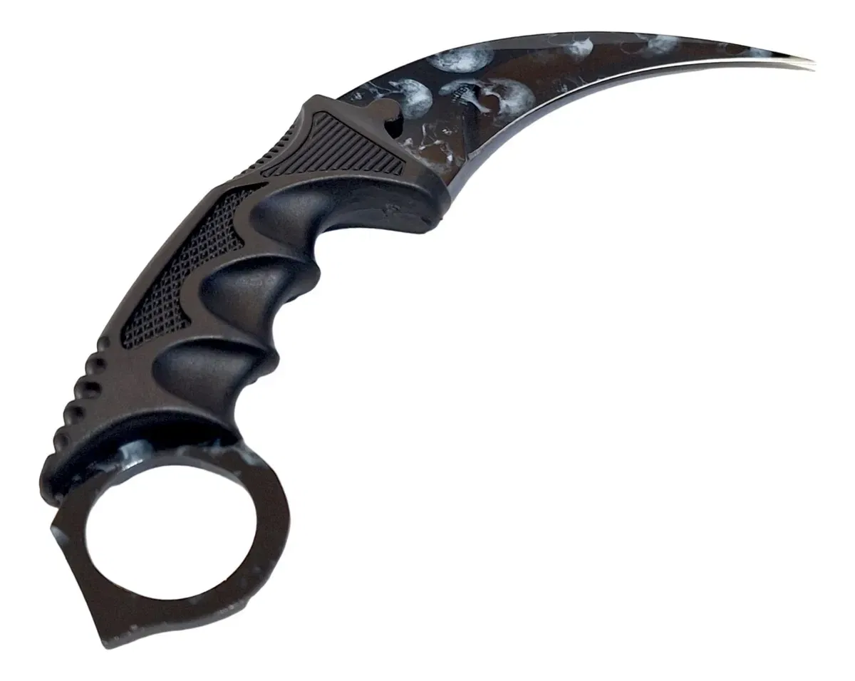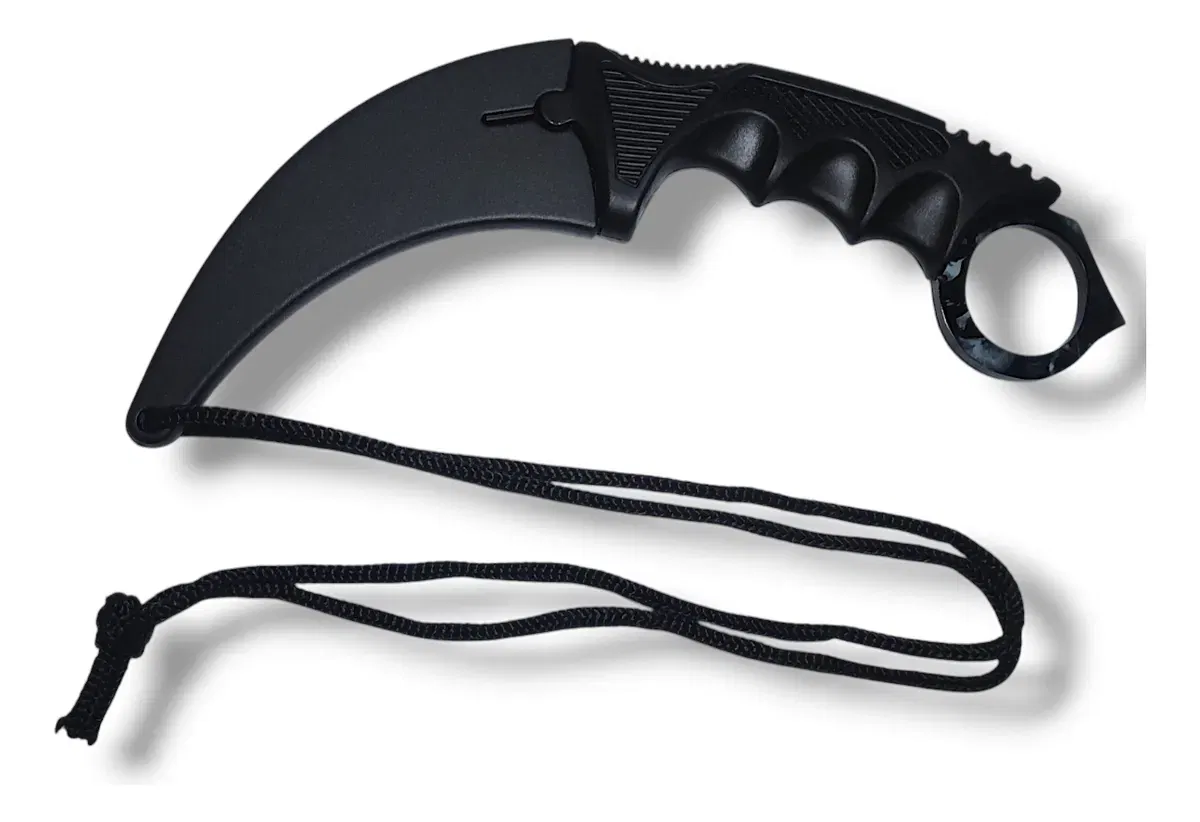 Cuchillo de hoja enteriza estilo kerambit, ideal para defensa personal.