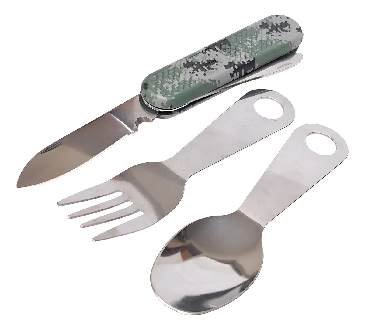 Este set de cubiertos todo en uno es ideal para quienes disfrutan del camping, trekking, pesca o cualquier actividad al aire libre. Ligero, funcional y fácil de transportar gracias a su funda con pasa cinto, ¡tené siempre a mano lo esencial!