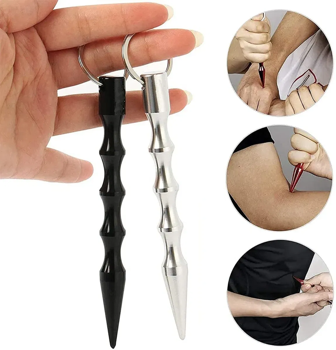 Uso Versátil: No solo es efectivo para romper cristal en situaciones de emergencia, sino que también puede ser utilizado como una herramienta de presión en técnicas de defensa personal.