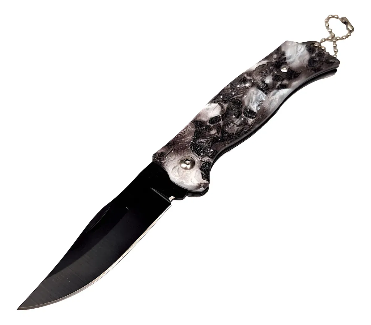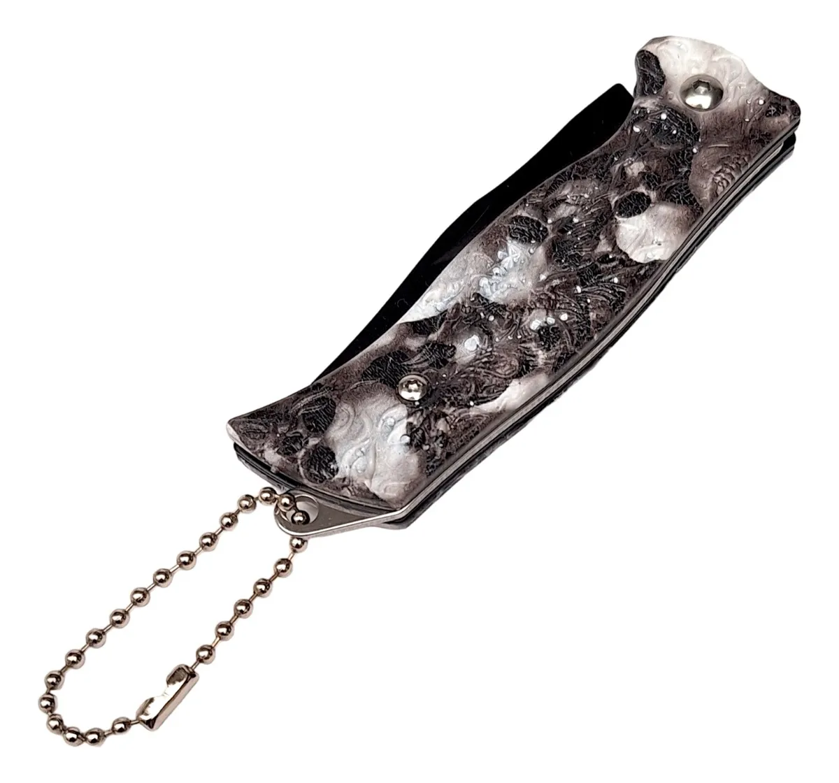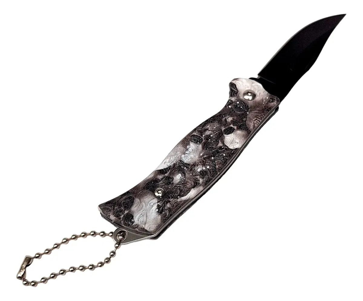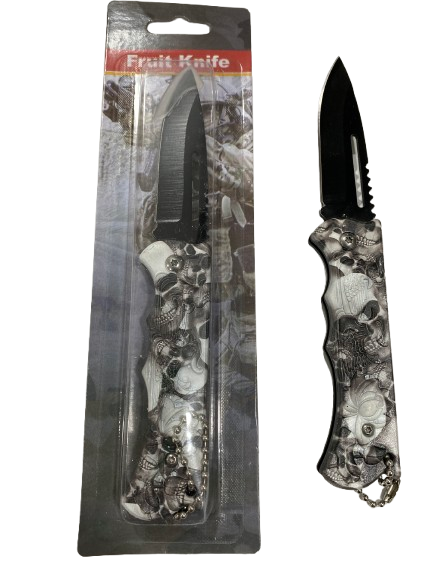 Cuchillo Navaja Plegable* Apertura manual* Con cadena para usar de llaveroHoja: 6 cmLargo total abierta: 14,5 cmCerrada: 9 cm