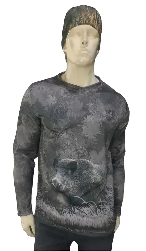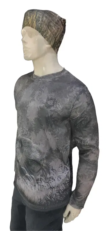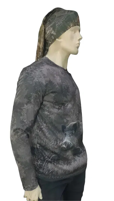 Remera Mto Jabali Gris Secado Rápido Capucha Filtro Uv