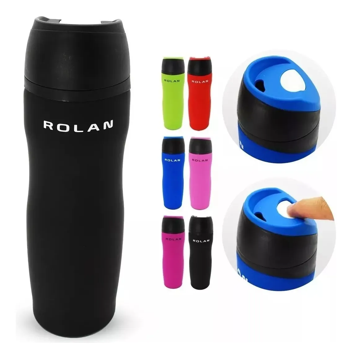 Botella Vaso Rolan Deportiva Modelo Sport Nueva Tapa Hermètica 500 ML Acero Inoxidable Doble Capa Revestida con Pintura Antideslizante Simil Engomado