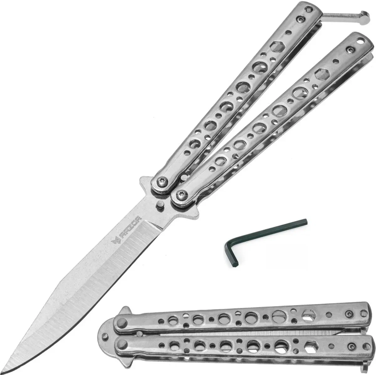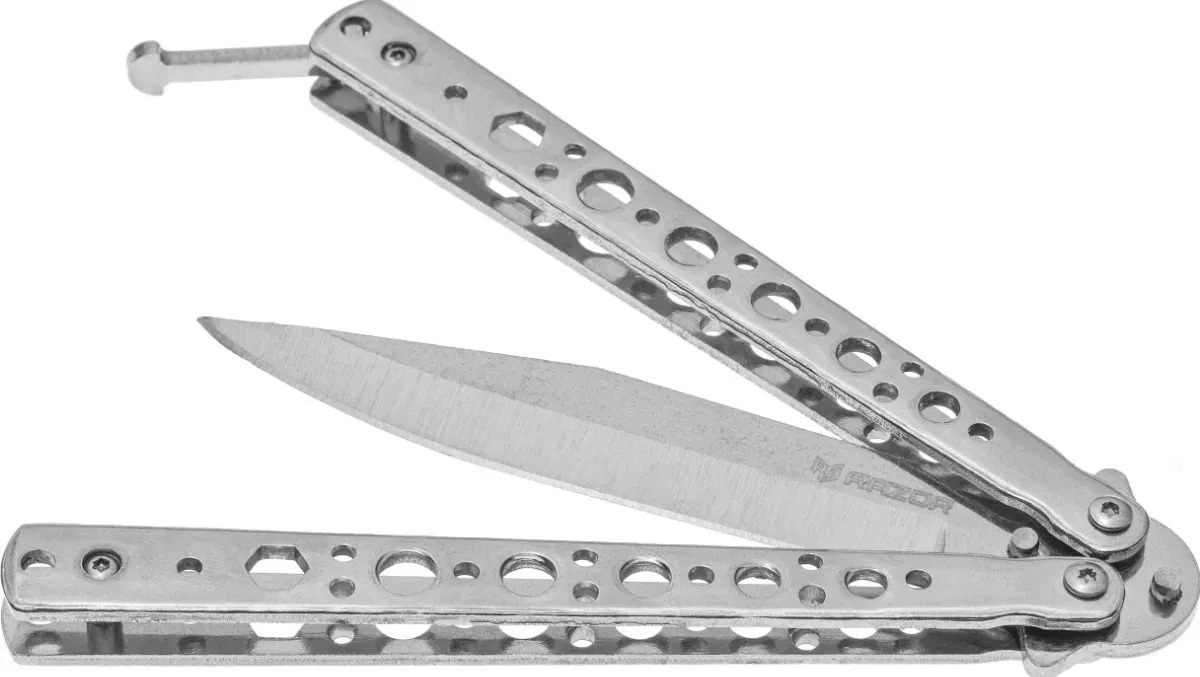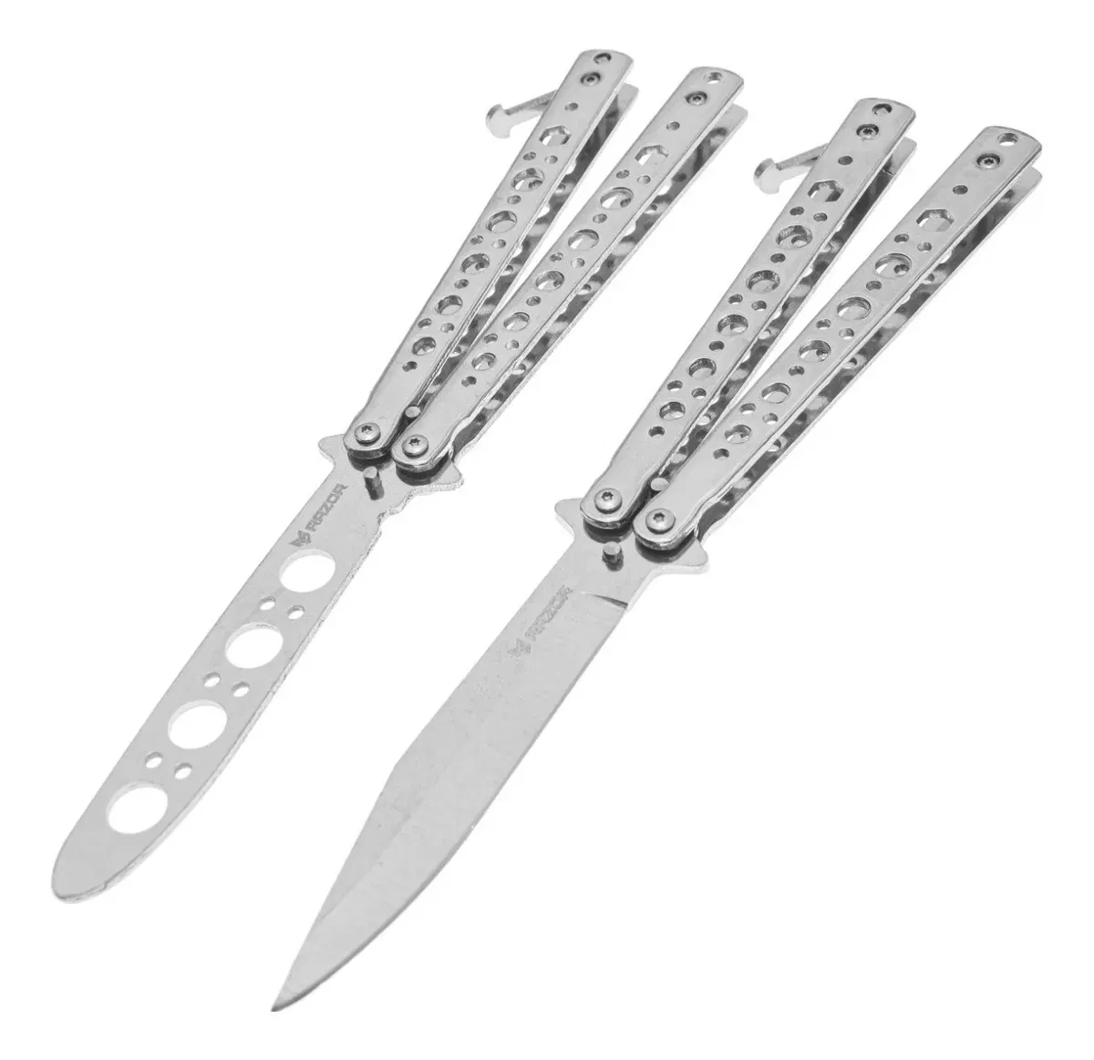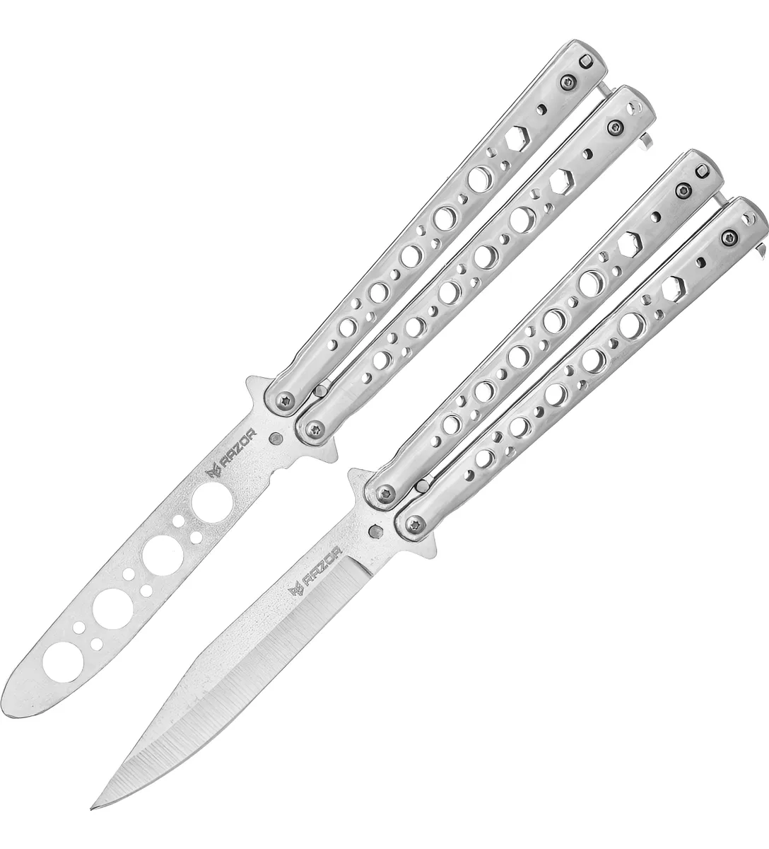 NAVAJAS MARIPOSA PLATEADAS CON FILO RAZOR CUCHILLO TACTICO