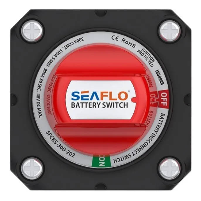 Proteja su barco o motorhome instalando este interruptor principal de batería SEAFLO. Con capacidad nominal de 275 A continuos, 450 A intermitentes, 1250 A de arranque y 48 V. Puede empotrarse o montarse en superficie.