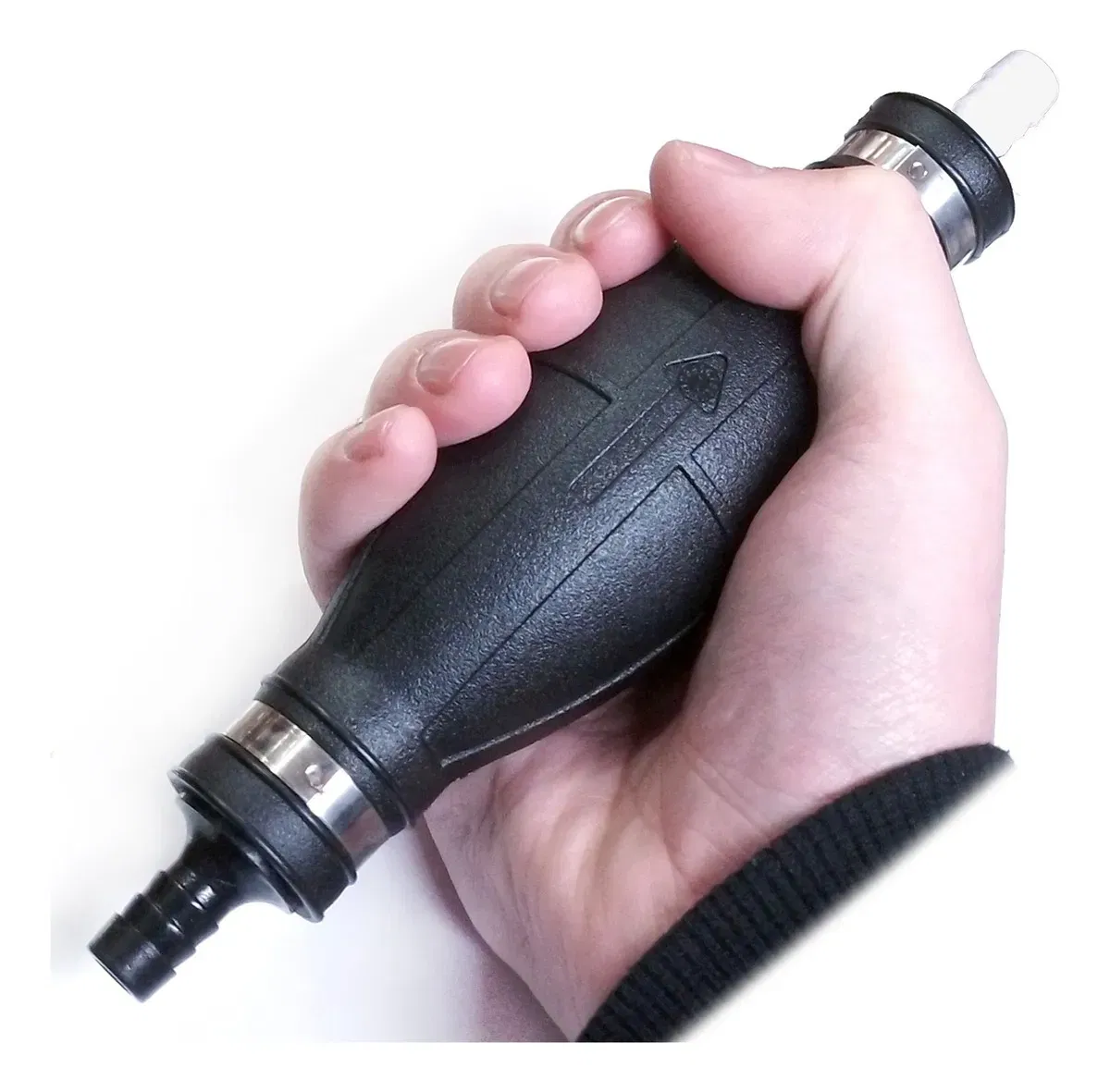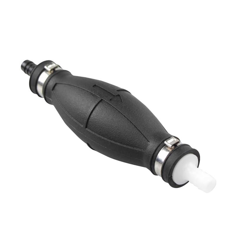 Pera para Combustible 10 mm 3/8, largo 185 mm, con válvula de retención, fabricado en PVC reforzado, resistente a la nafta y alcoholes. Diseñado para bombear combustible en un sistema de combustible remoto. Está equipado con racores para una manguera con un diámetro de 10 mm y es adecuado para todo tipo de motores fuera de borda.
