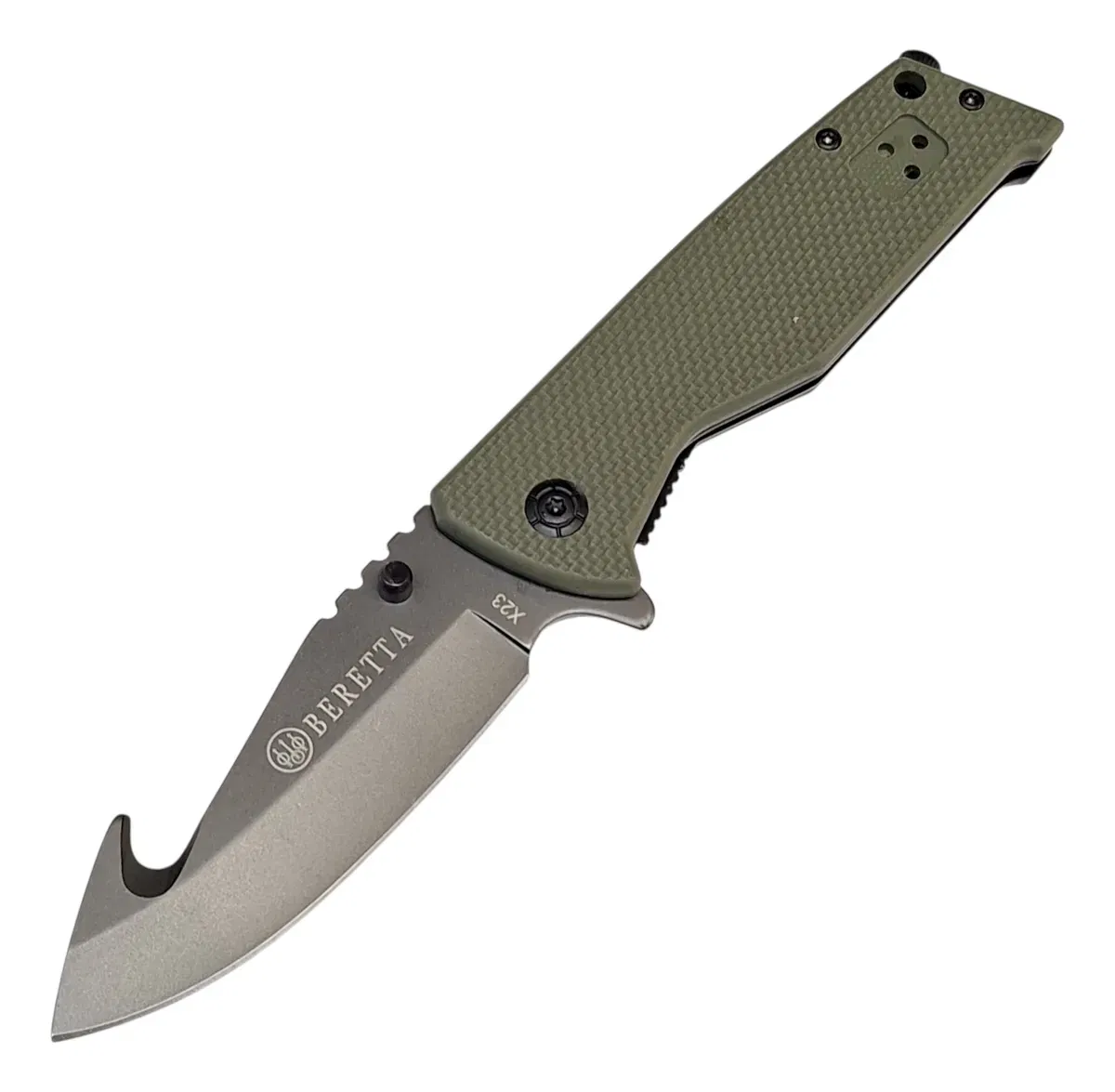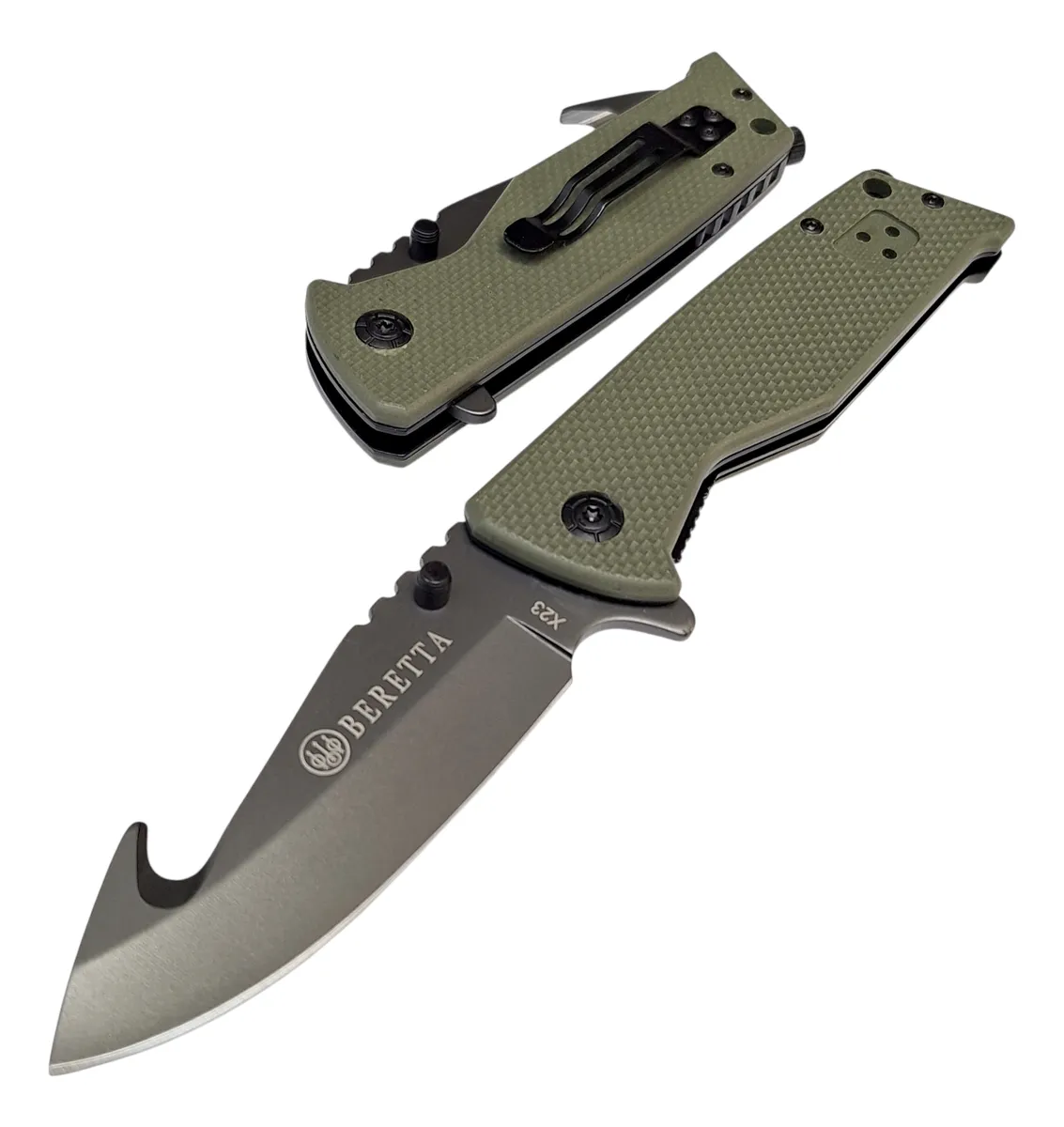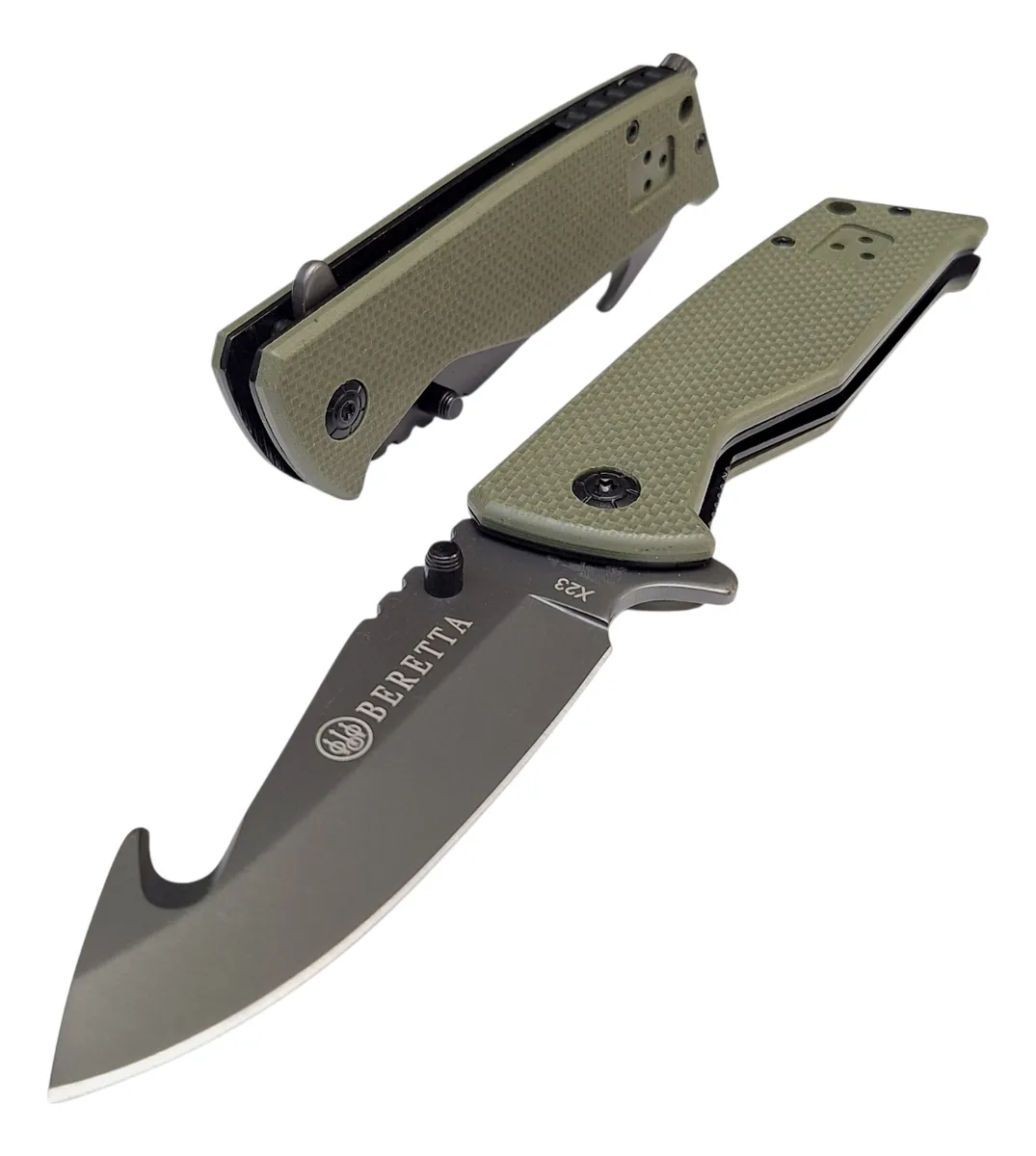 La Navaja Táctica Beretta X23 combina resistencia, funcionalidad y diseño en un formato compacto y confiable. Pensada para quienes buscan una herramienta práctica en el día a día o en actividades al aire libre, ofrece un filo de alto rendimiento y un manejo seguro en cualquier situación.