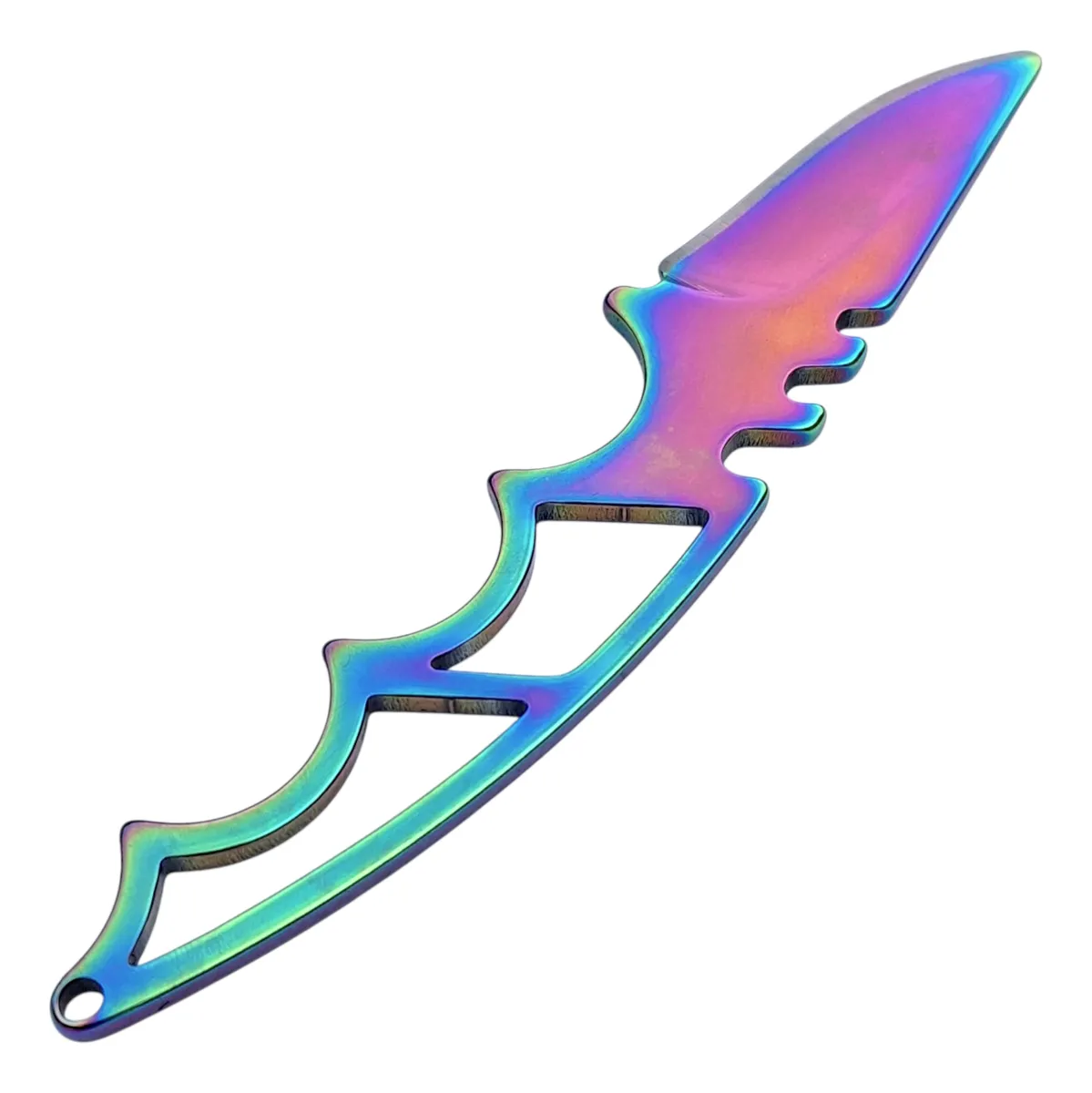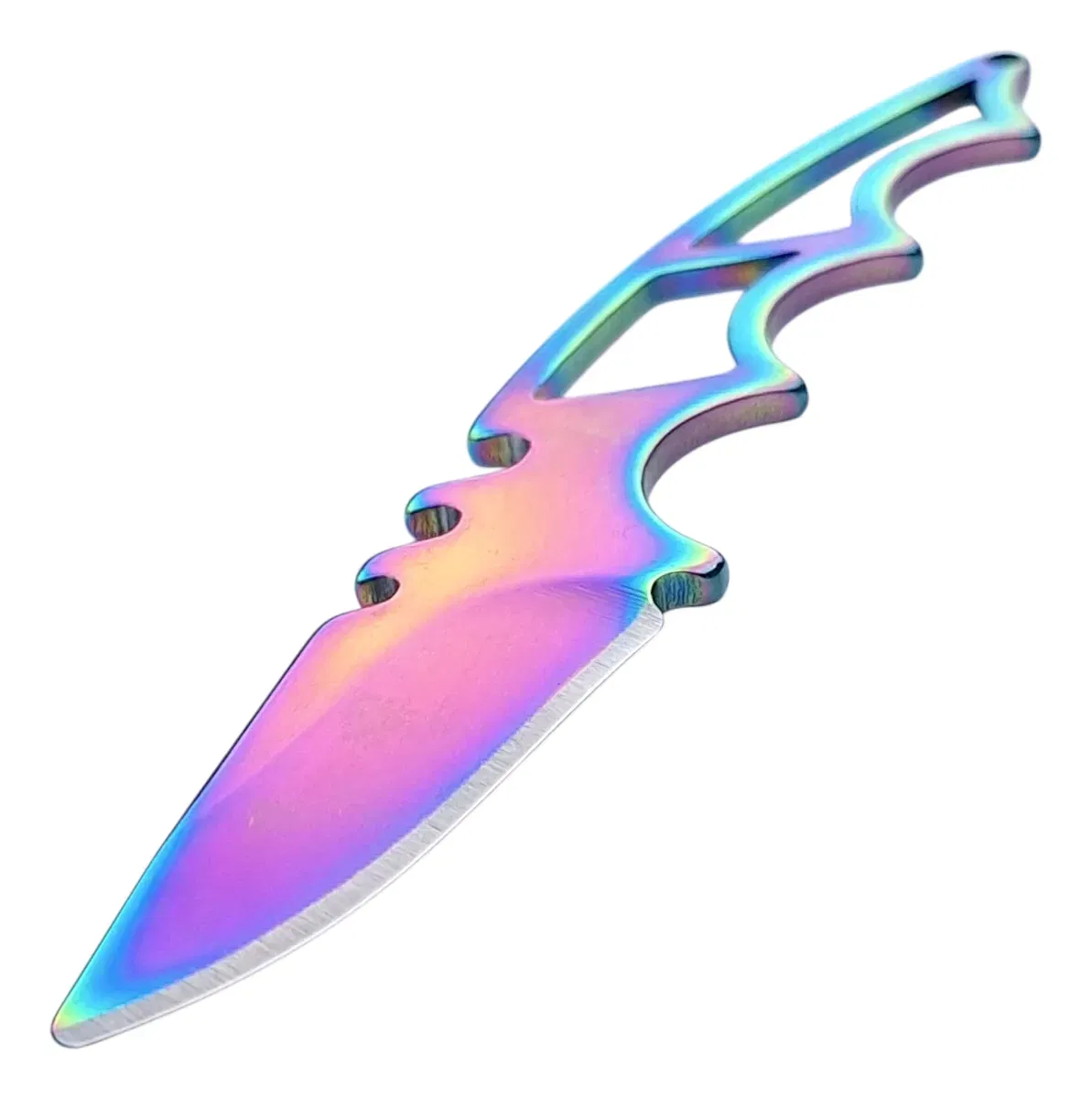 La Navaja Táctica de Supervivencia Tornasolada es el compañero ideal para aventureros y entusiastas del aire libre. Con una hoja de acero inoxidable de 4,5 cm de largo y 2,5 mm de espesor, ofrece un filo liso y eficaz para diversas tareas. Su diseño Drop permite cortes precisos, mientras que su mango de acero proporciona una excelente durabilidad y agarre.