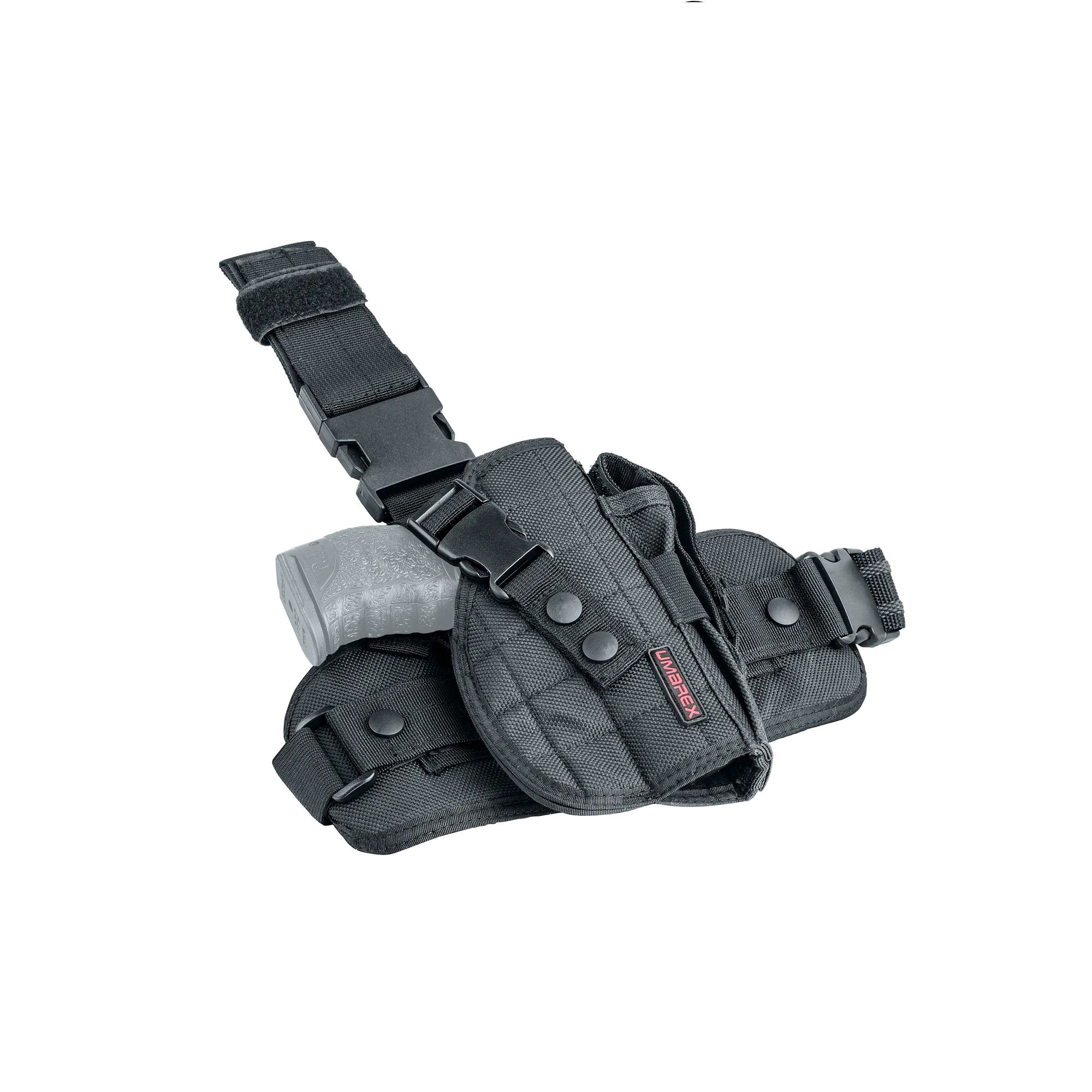 La canana cuenta con correas ajustables con una hebilla, lo que permite un ajuste seguro y personalizado. Además, la funda para pierna es de Nylon impermeable, lo que añade una capa extra de protección a tu pistola.