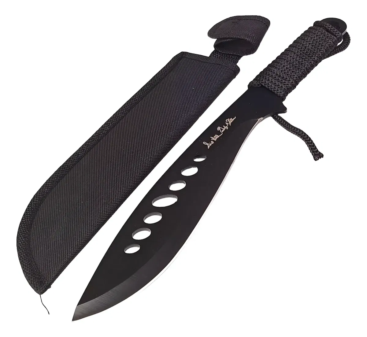 Diseño Buscado y Portable: Su diseño kukri es altamente valorado por su eficiencia y estilo distintivo. Es portable y ligero gracias a los agujeros que alivianan su peso.