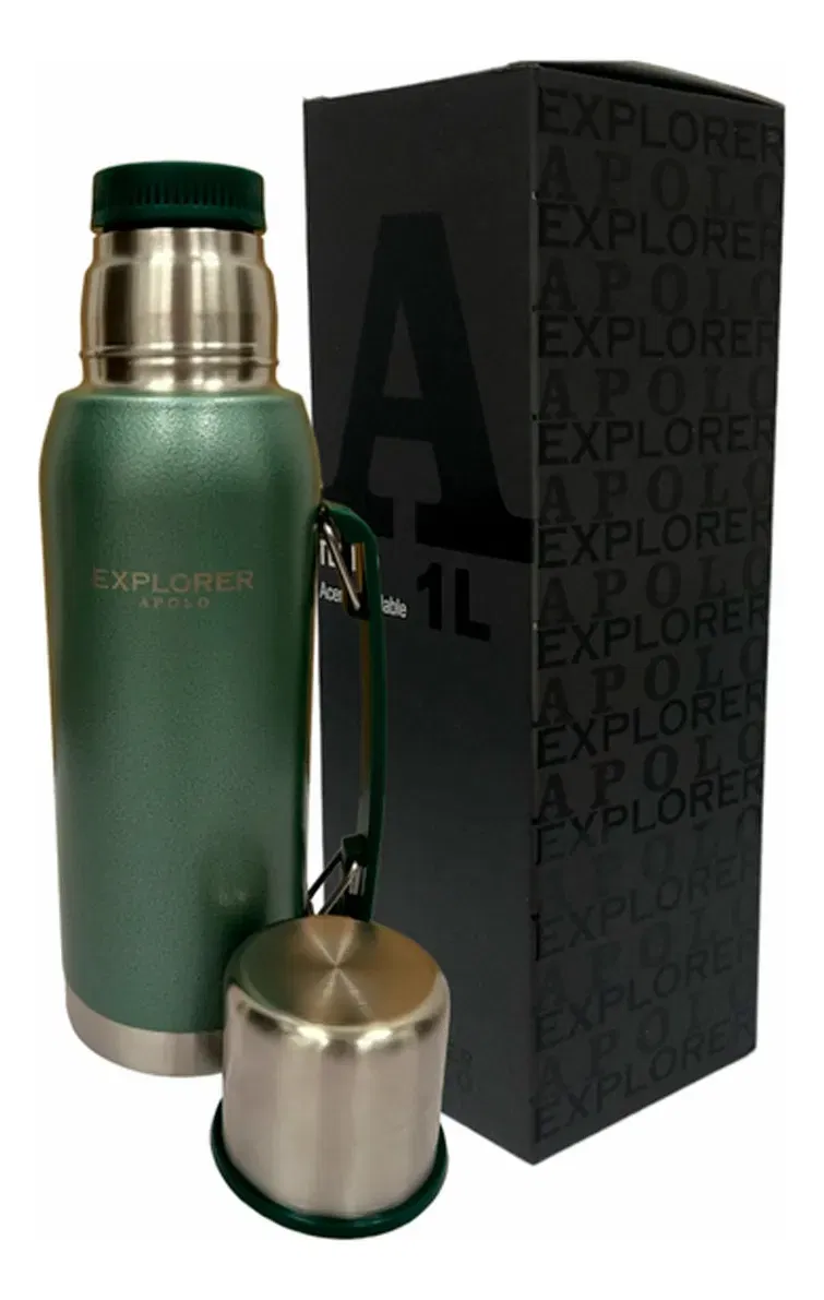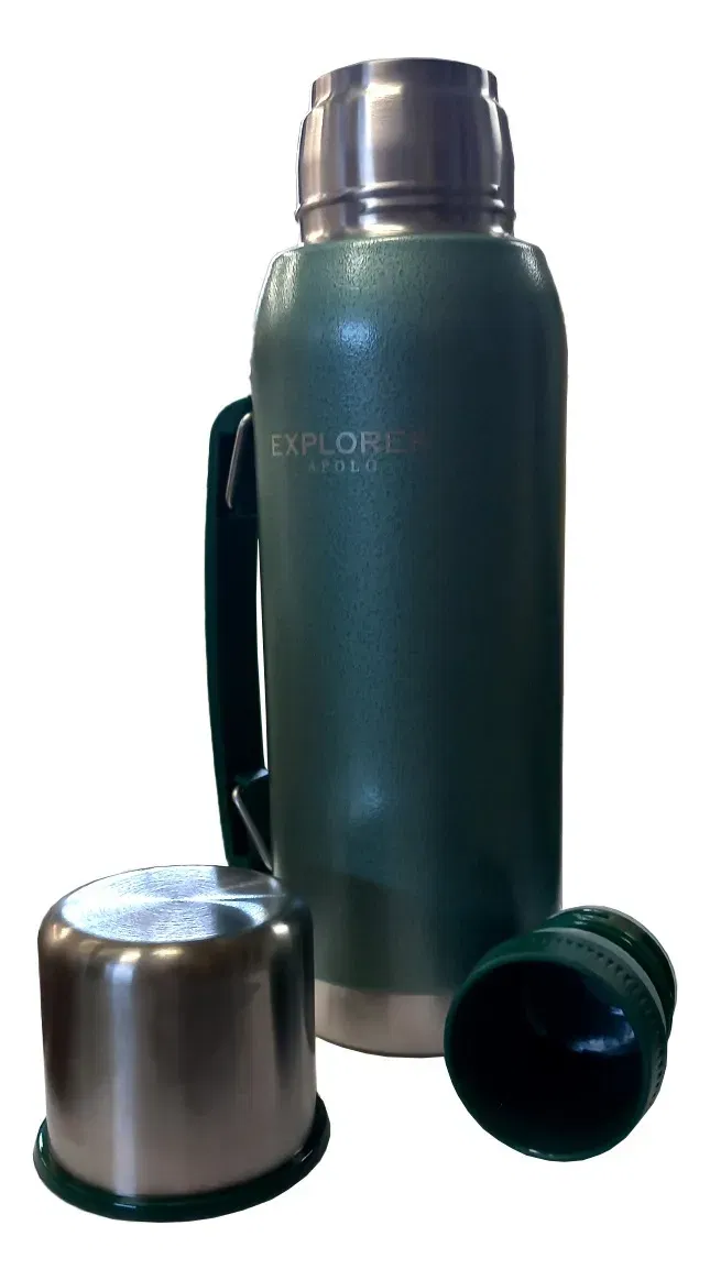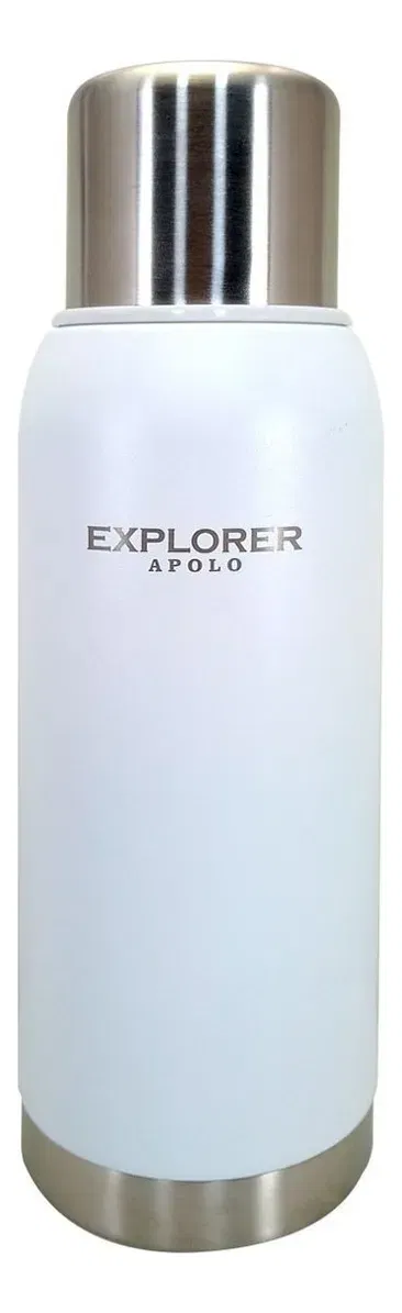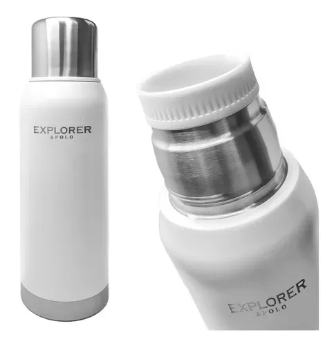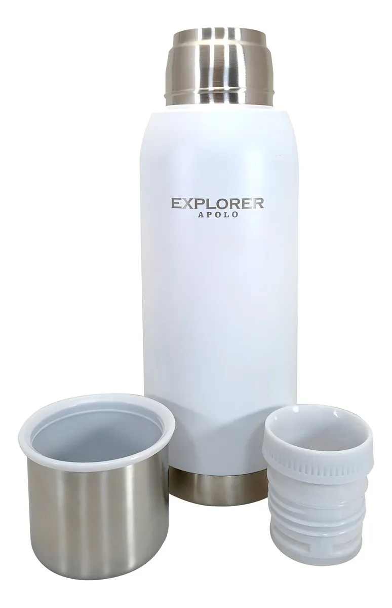 TERMO EXPLORER ACERO INOXIDABLE 1 LITRO BLANCO / PLATA CON TAPÓN CEBADOR IDEAL PARA MATE. CONSERVA 24 HS. FRÍO Y CALOR