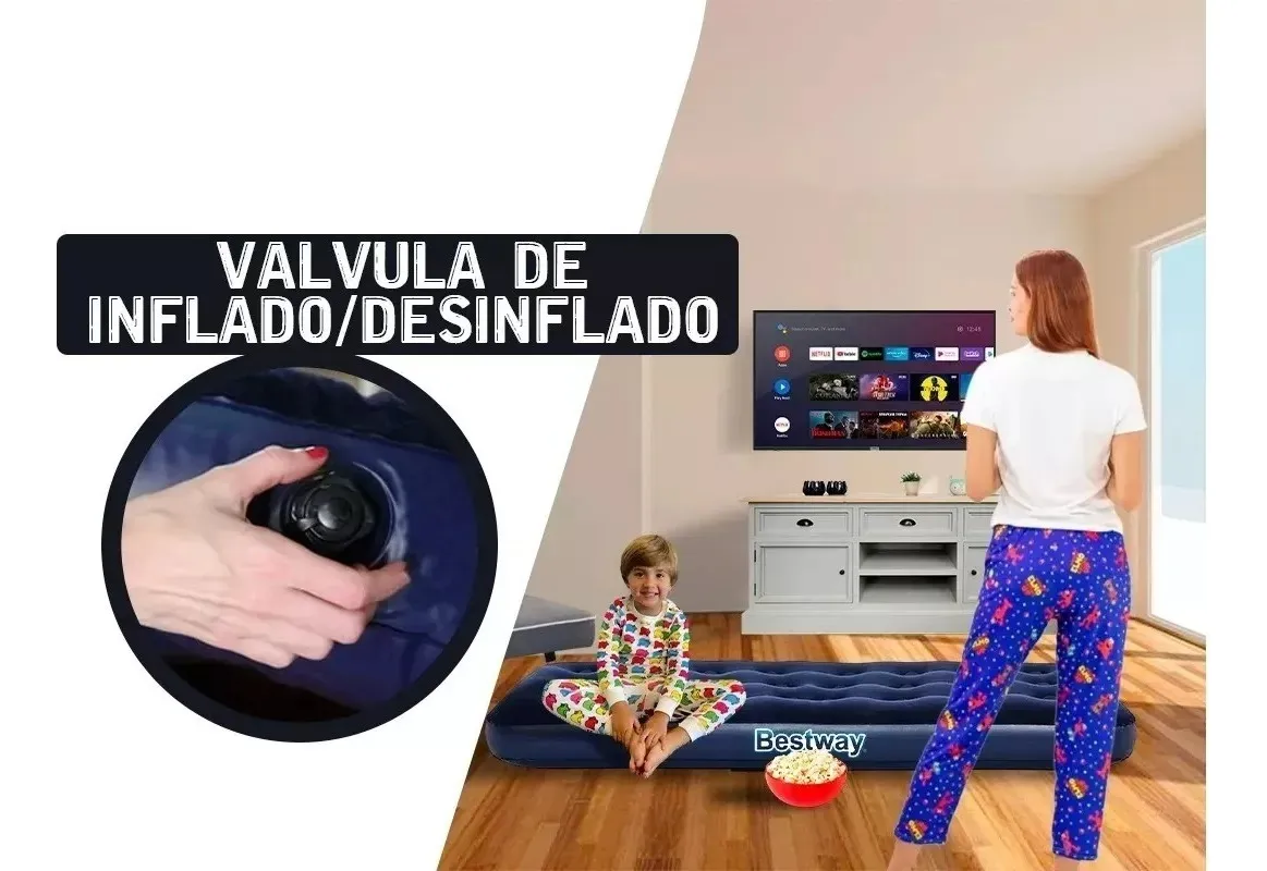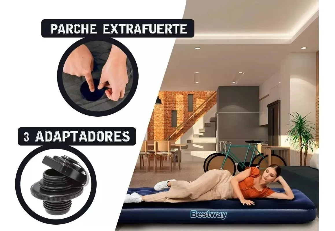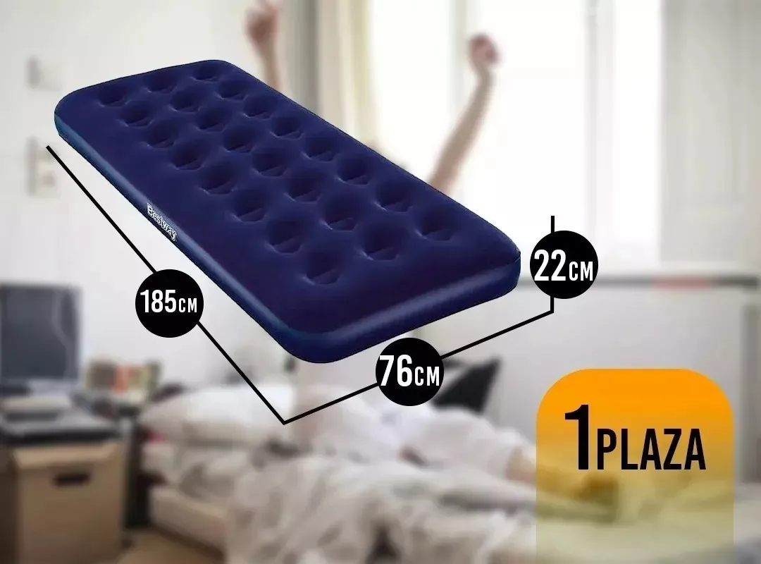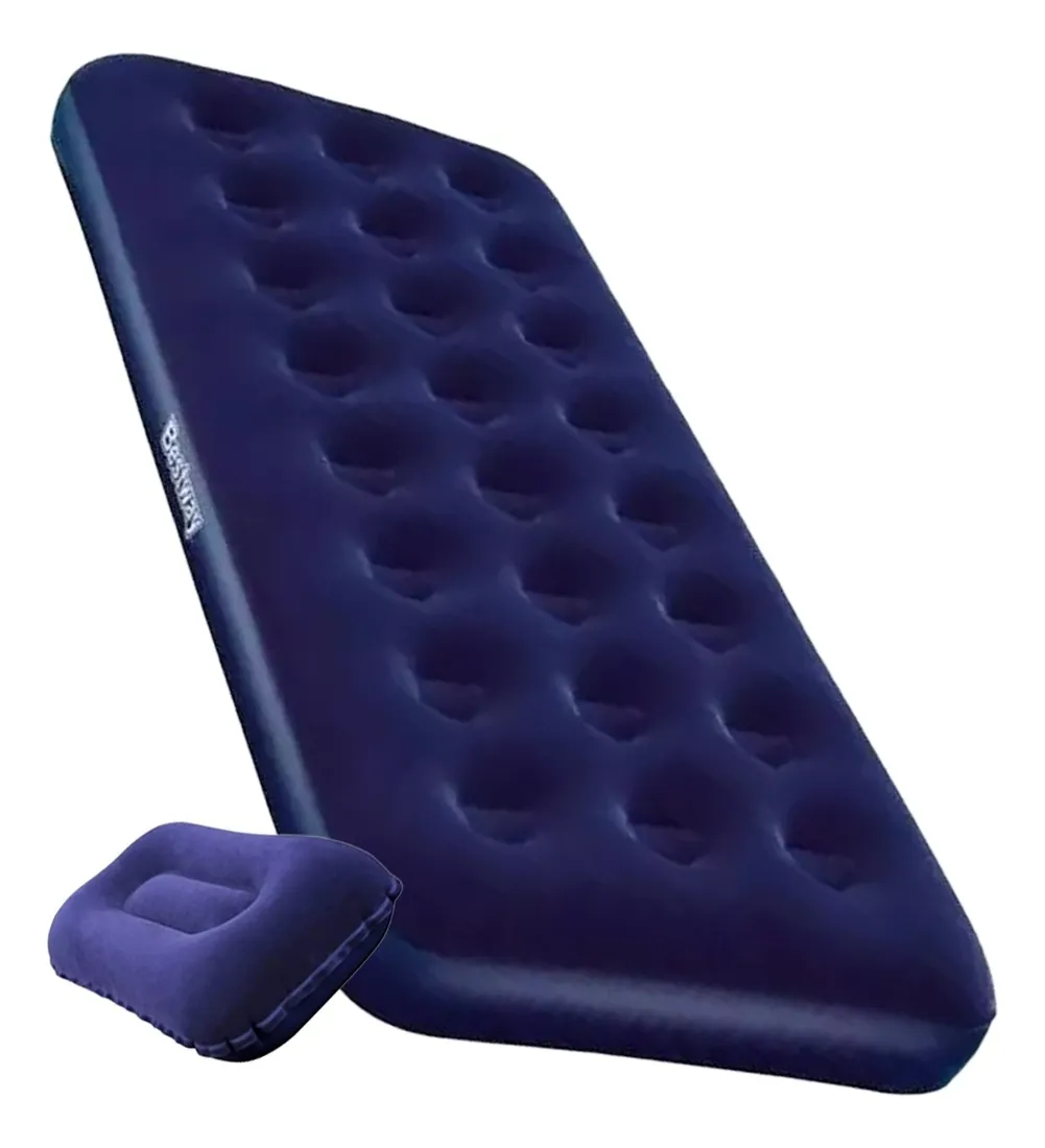 COLCHÓN INFLABLE + ALMOHADA CAMPING HOGAR 1 PLAZA REFORZADO