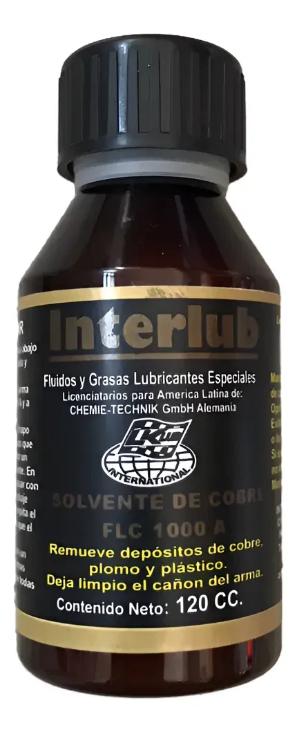 El nuevo LIMPIADOR DESENCOBRANTE remueve depósitos de plomo, cobre y plástico, disolviendo pólvora y carbón en rifles, escopetas, carabinas y armas de puño. Comienza a trabajar aflojando la suciedad después de ser aplicado utilizando el cepillo de limpieza o un trozo de algodón. Luego de la limpieza con el Solvente de Cobre, proteja las superficies del arma con el lubriprotector LUBRICANTE ANTICORROSIVO para prevenir la corrosión. Es inflamable, tiene olor agradable y no contiene productos cloro-fluor- carbonados.