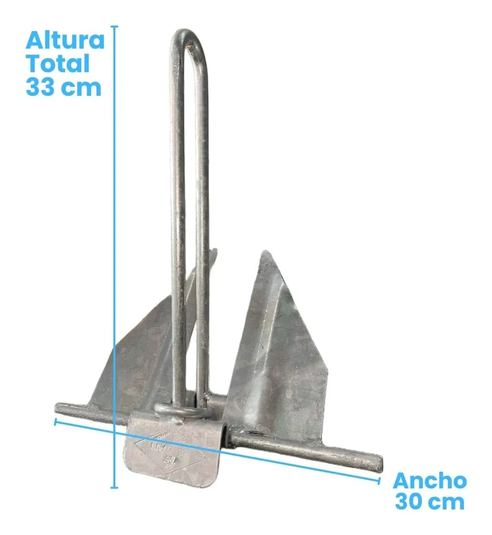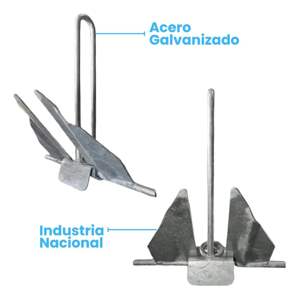 Diseñada pensando en un fondeo liviano, fácil de guardar, con buen agarre en relación a su peso y que pueda recuperarse con facilidad en caso de quedar atascada en el fondo. Se usa para fondeo en barro, grava o arena de embarcaciones menores en situaciones no criticas. Al contar con una argolla en su caña le permite tirar en sentido inverso y de esa forma recuperar el ancla atascada. Construida en acero electrosoldado y galvanizado en caliente con gran resistencia al óxido. -Modelo Imperdible A5 - Recomendada embarcaciones de 3 a 4,5 mts. (esta referencia depende de la embarcación corriente, viento, etc.) - Galvanizada - Marca RO-AN