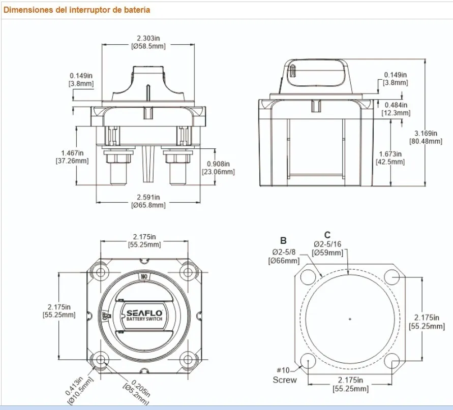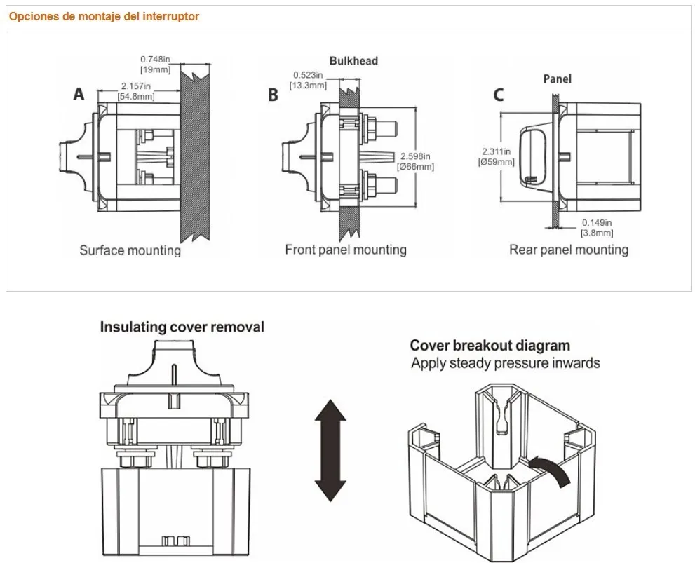• Cumple con todos los requisitos del American Boat and Yacht Council (ABYC) para interruptores de batería.