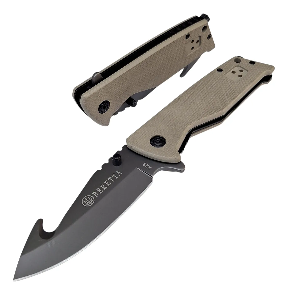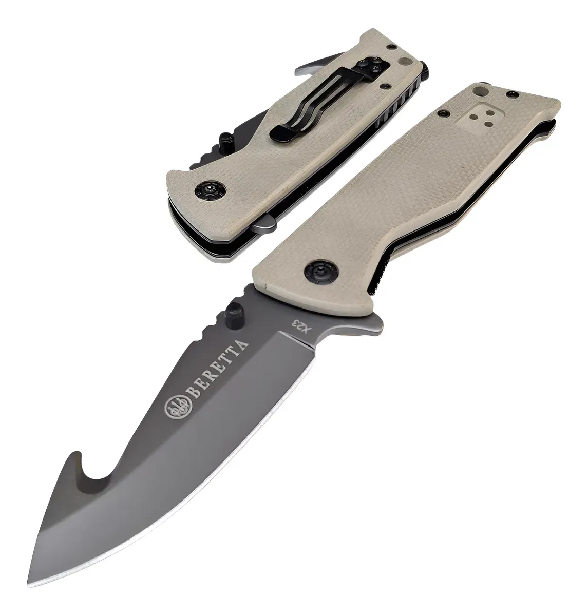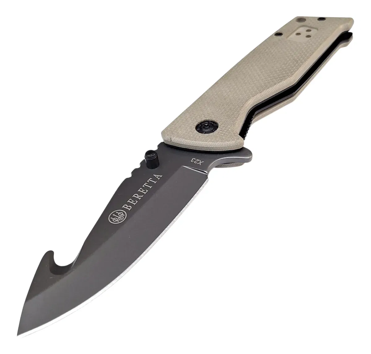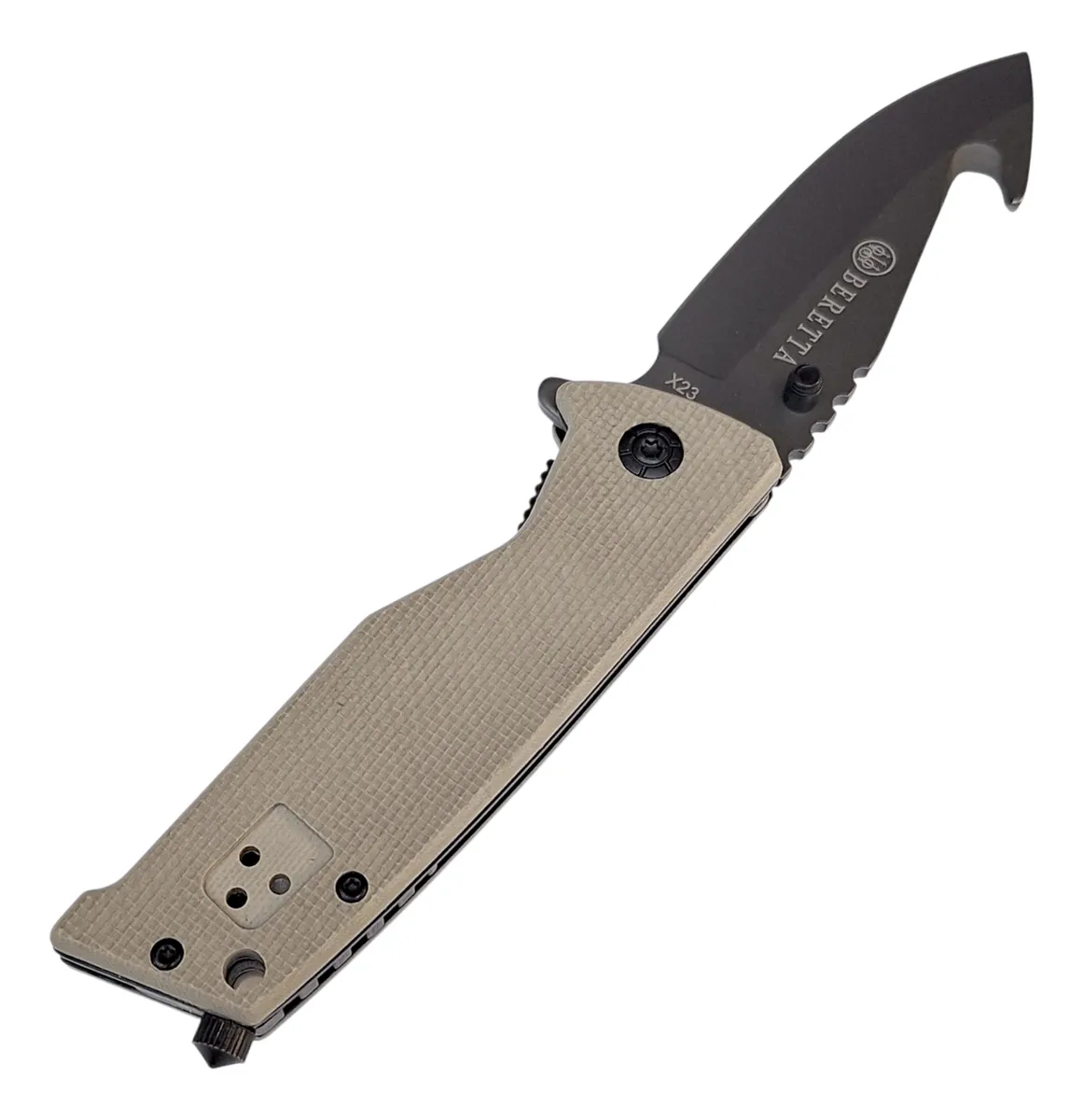 La Navaja Táctica Beretta X23 combina resistencia, funcionalidad y diseño en un formato compacto y confiable. Pensada para quienes buscan una herramienta práctica en el día a día o en actividades al aire libre, ofrece un filo de alto rendimiento y un manejo seguro en cualquier situación.