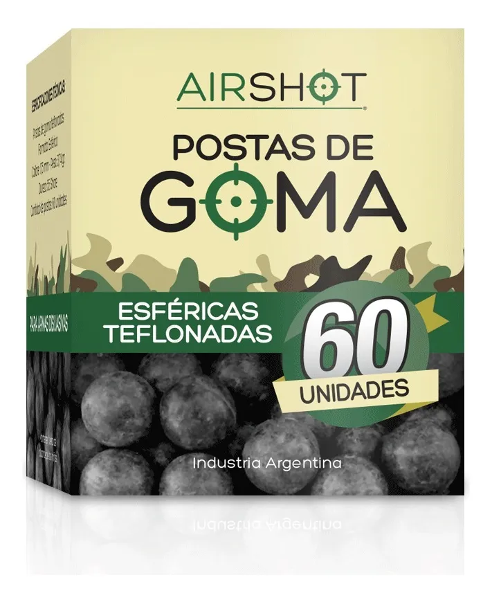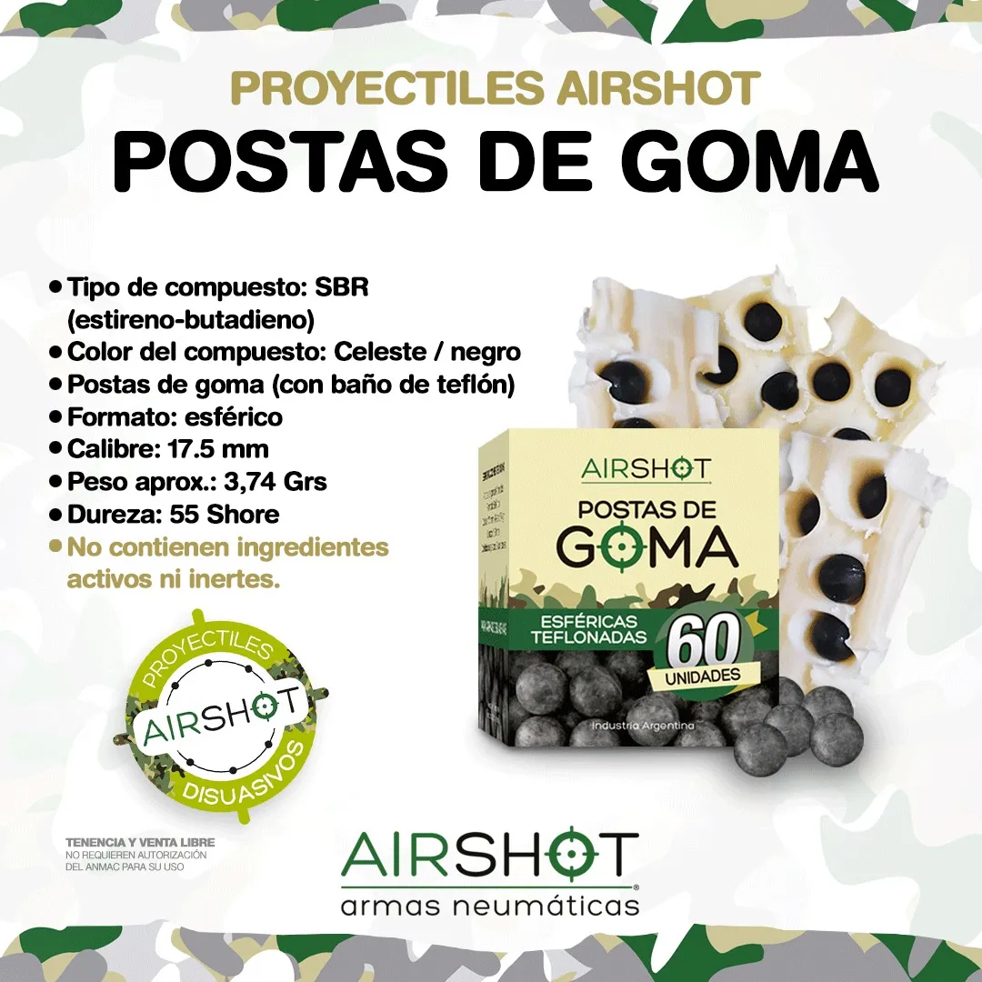 Postas de Goma Teflonadas AIRSHOT cal.: 17.5 mm, para escopetas Disuasivas, en caja de 60 unidades.
