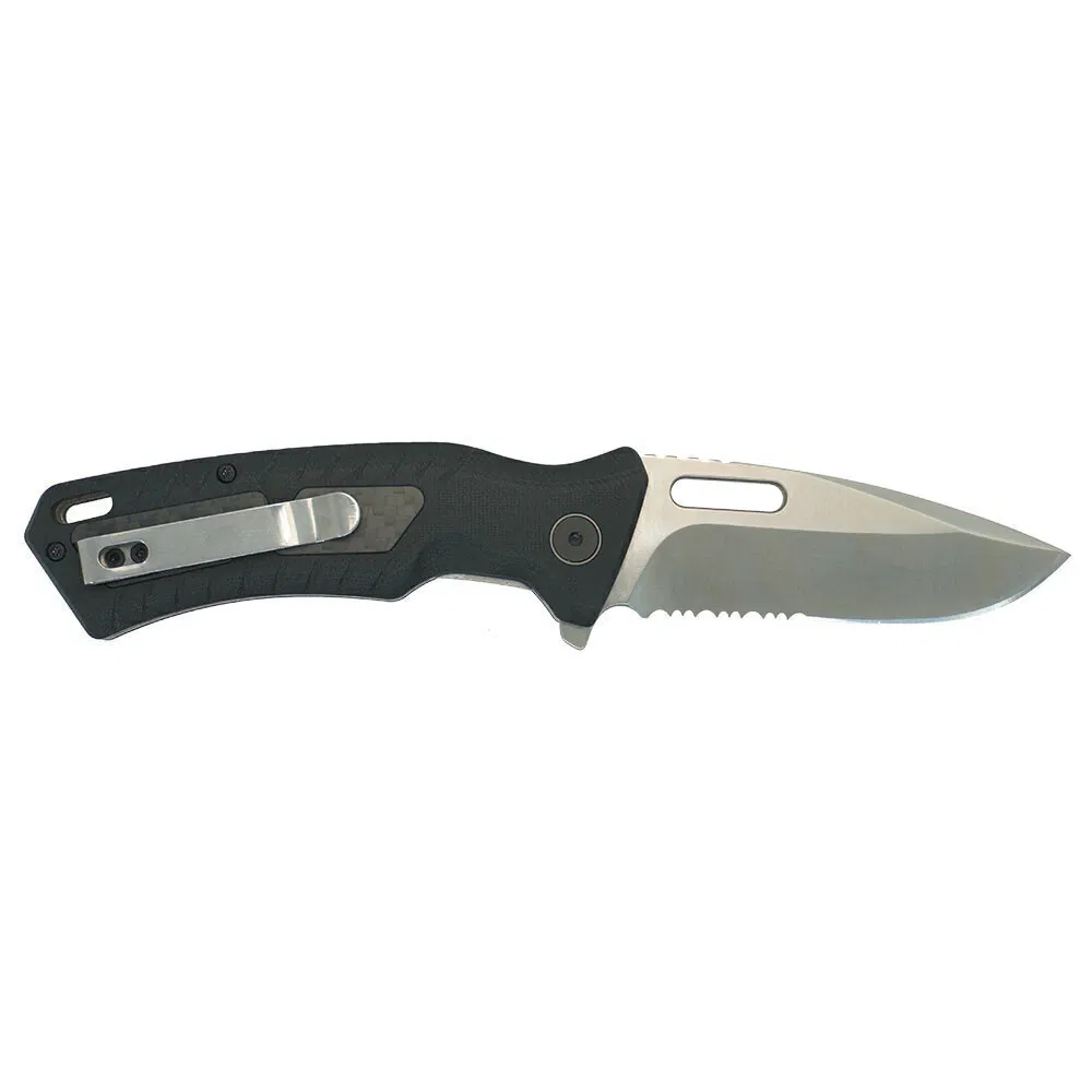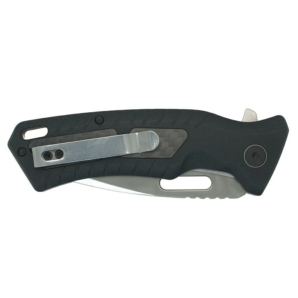y su empuñadura fabricada en G10, con insertos simil fibra de carbono, brindan un filo y resistencia excepcionales.